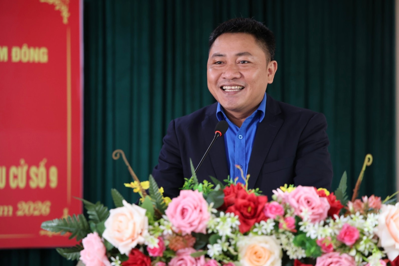 Ông Nguyễn Thanh Xuân, Giáo viên Trường THPT Phan Bội Châu, Ủy viên Ban Chấp hành Tỉnh đoàn Lâm Đồng, trình bày chương trình hành động trước cử tri