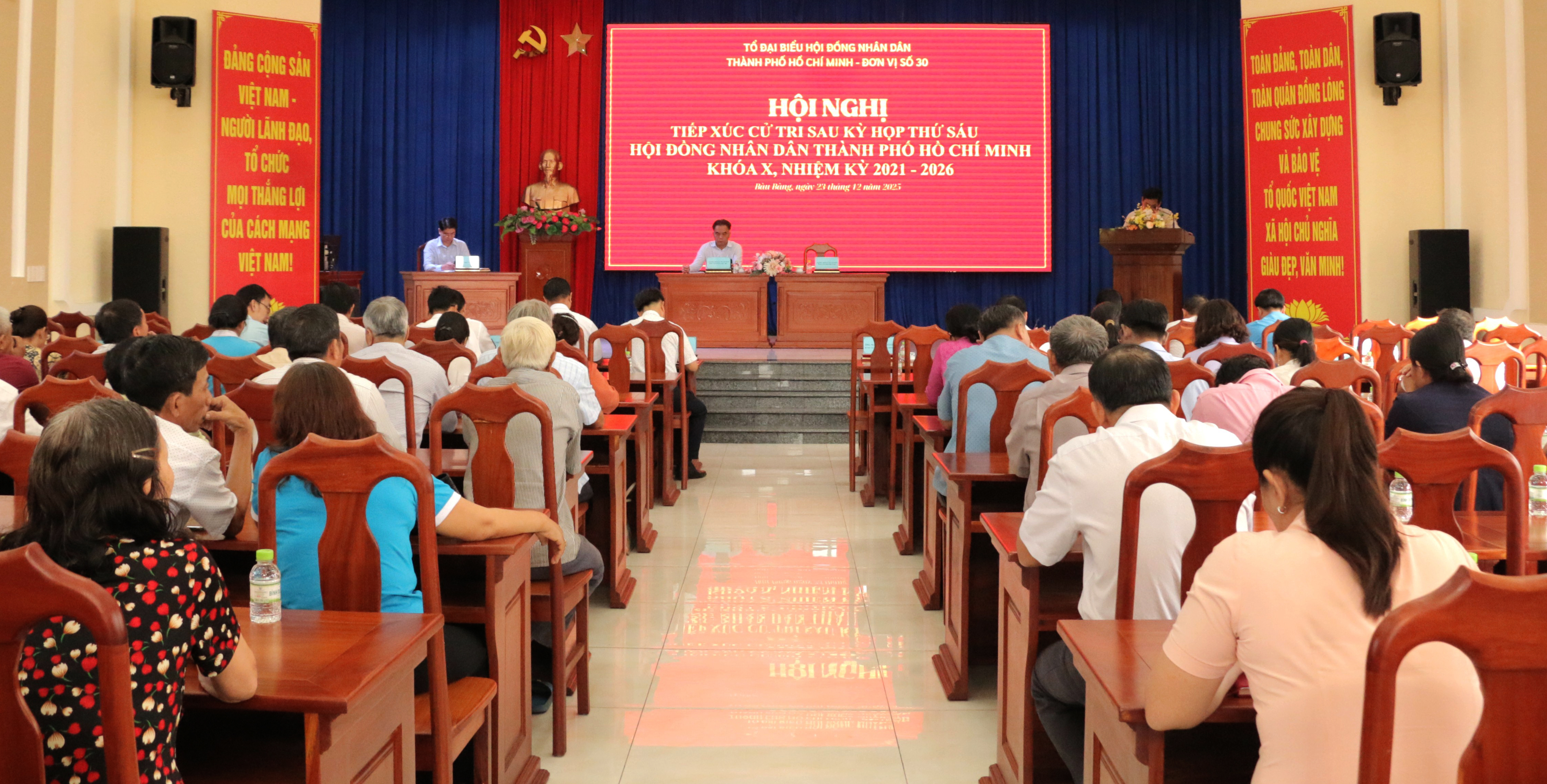 Tổ Đại biểu (ĐB) HĐND TPHCM, Đơn vị số 30 gồm các ĐB: Nguyễn Lộc Hà - Ủy viên Ban Thường vụ Thành ủy, Phó Chủ tịch Thường trực UBND TPHCM; Võ Thành Giàu - Phó Giám đốc Sở Nông nghiệp và Môi trường TPHCM trong buổi tiếp xúc cử tri xã Bàu Bàng sáng 23-12 đã tiếp thu nhiều ý kiến kiến nghị về vấn đề giải quyết thủ tục hành chính về đất đai, hạ tầng giao thông xuống cấp, ô nhiễm môi trường...