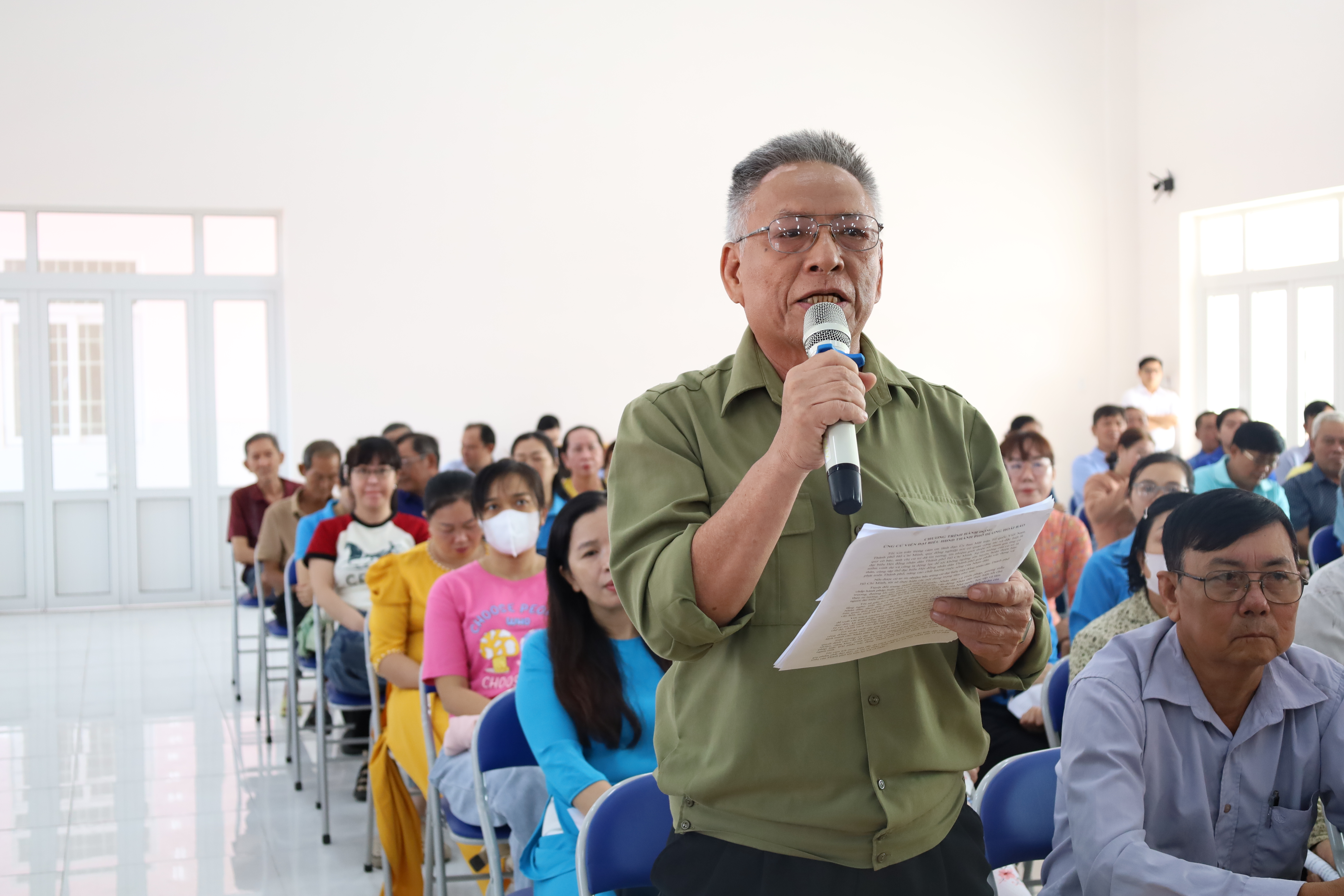 Cử tri xã Bình Lợi nêu các kiến nghị. Ảnh: CẨM NƯƠNG