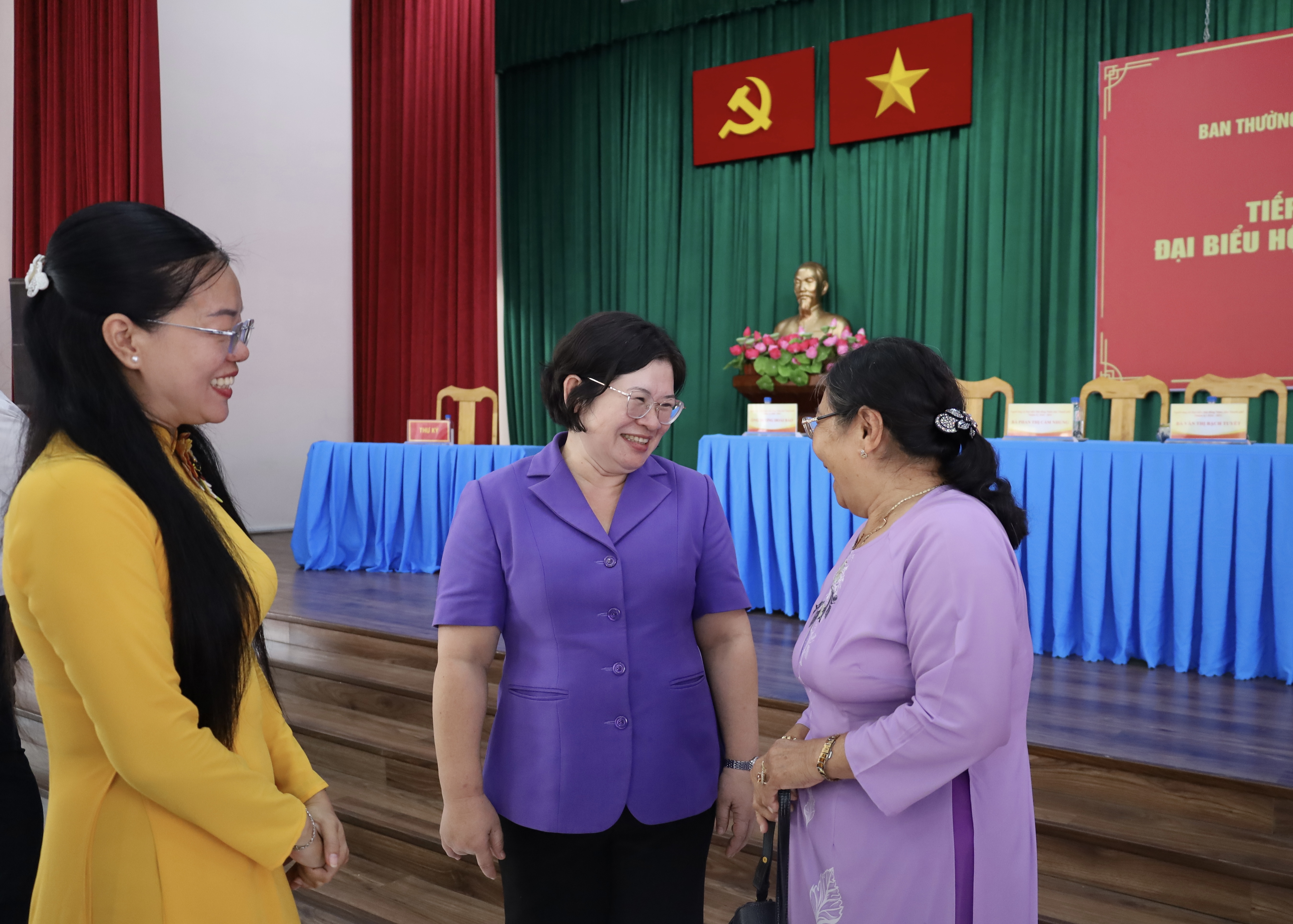 Phó Bí thư Thành ủy TPHCM Văn Thị Bạch Tuyết trò chuyện cùng các cử tri xã Bình Lợi. Ảnh: CẨM NƯƠNG