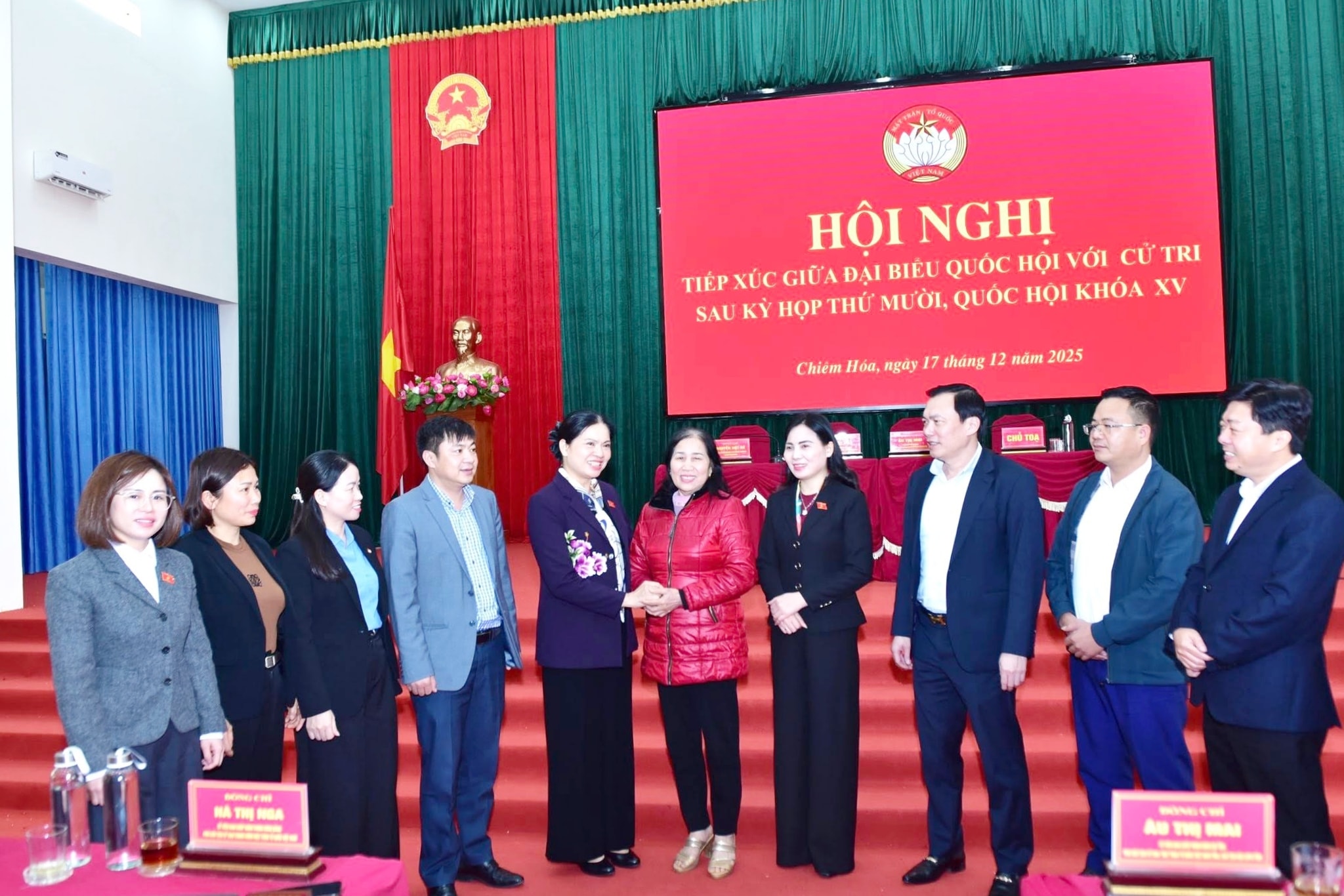Dự buổi tiếp xúc có các ĐBQH: Ủy viên Trung ương Đảng, Phó Chủ tịch Ủy ban Trung ương MTTQ Việt Nam Hà Thị Nga; Phó Chủ tịch Ủy ban MTTQ Việt Nam tỉnh, Chủ tịch Hội Liên hiệp Phụ nữ tỉnh Âu Thị Mai; Giám đốc Ngân hàng Nông nghiệp và Phát triển nông thôn Việt Nam chi nhánh Tuyên Quang Nguyễn Việt Hà.