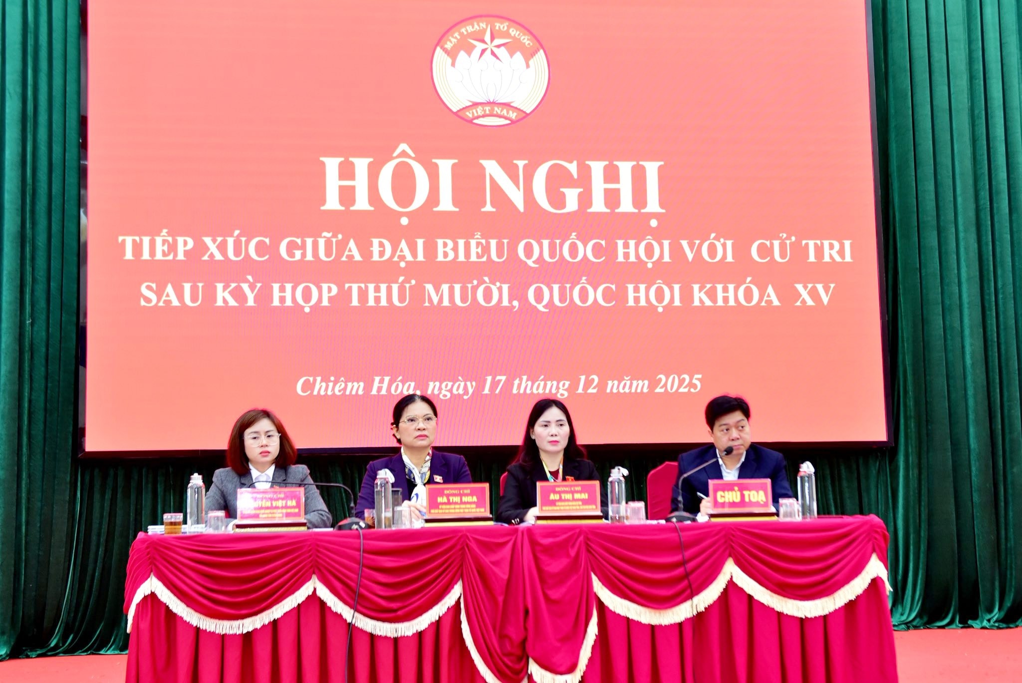 Cũng tại hội nghị, cử tri xã Chiêm Hóa đã kiến nghị với ĐBQH tỉnh về những nội dung như: Có giải pháp xử lý tình trạng cơ sở vật chất dôi dư sau sáp nhập; chế độ chính sách đối với người có công, cán bộ cơ sở cấp xã; có kế hoạch quy hoạch chung các địa phương sau thực hiện mô hình chính quyền 2 cấp; các biện pháp để bảo vệ môi trường.