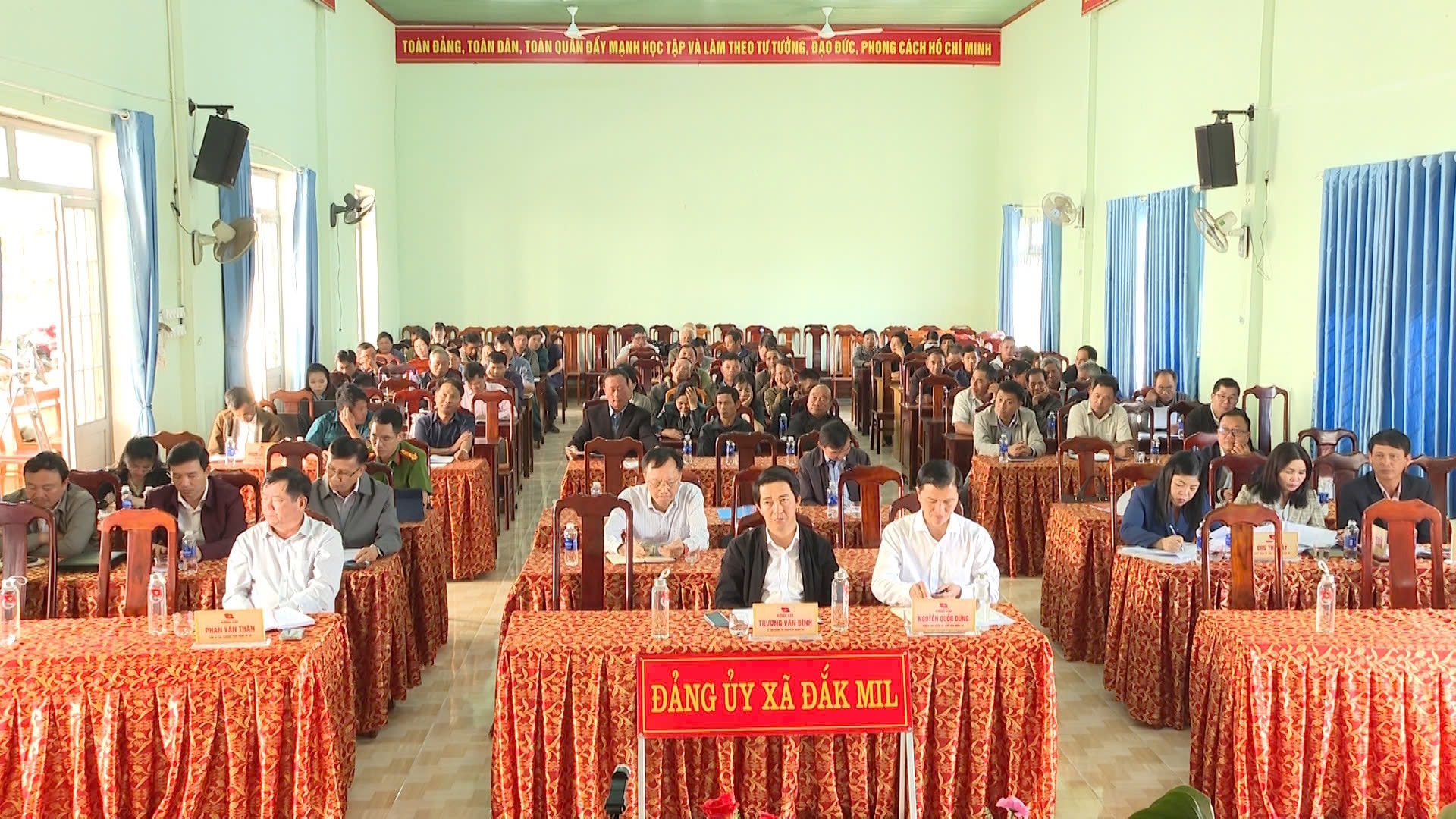 Quang cảnh hội nghị tiếp xúc cử tri của Đoàn ĐBQH tỉnh với cử tri xã Đắk Mil