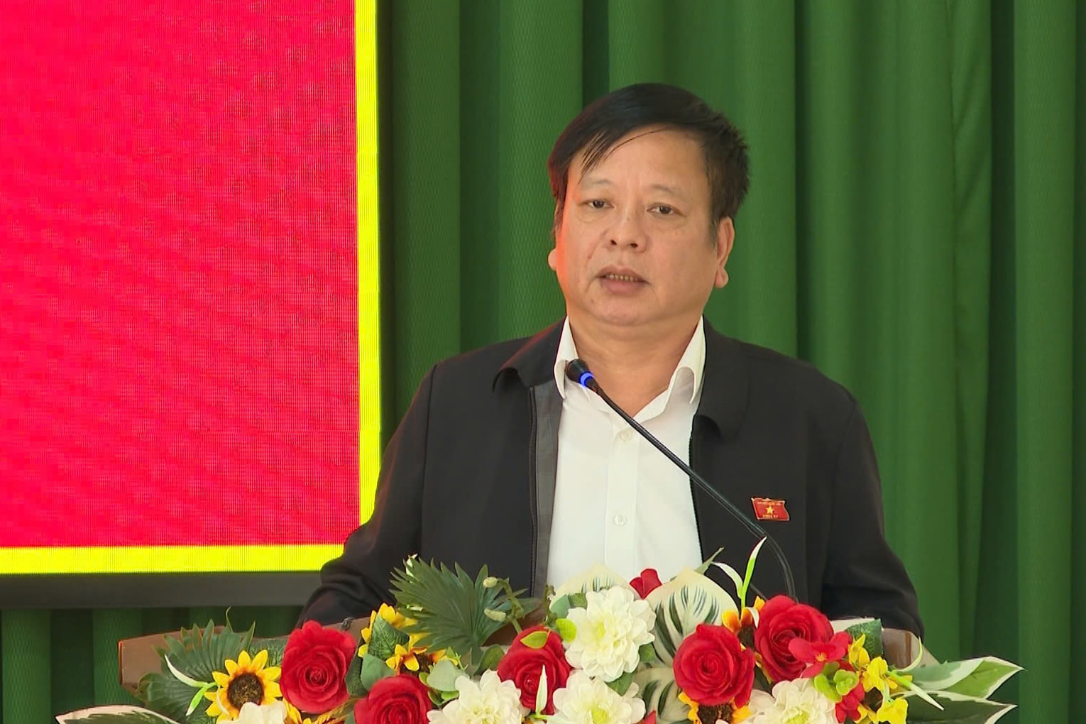 Chủ trì Hội nghị tiếp xúc cử tri có các đại biểu: Nguyễn Trường Giang, Phó Chủ nhiệm Ủy ban Pháp luật và Tư pháp của Quốc hội; Dương Khắc Mai, Tỉnh ủy viên, Phó trưởng Đoàn Chuyên trách Đoàn ĐBQH tỉnh; Trần Thị Thu Hằng, Ủy viên Ủy ban Văn hóa và Xã hội của Quốc hội.