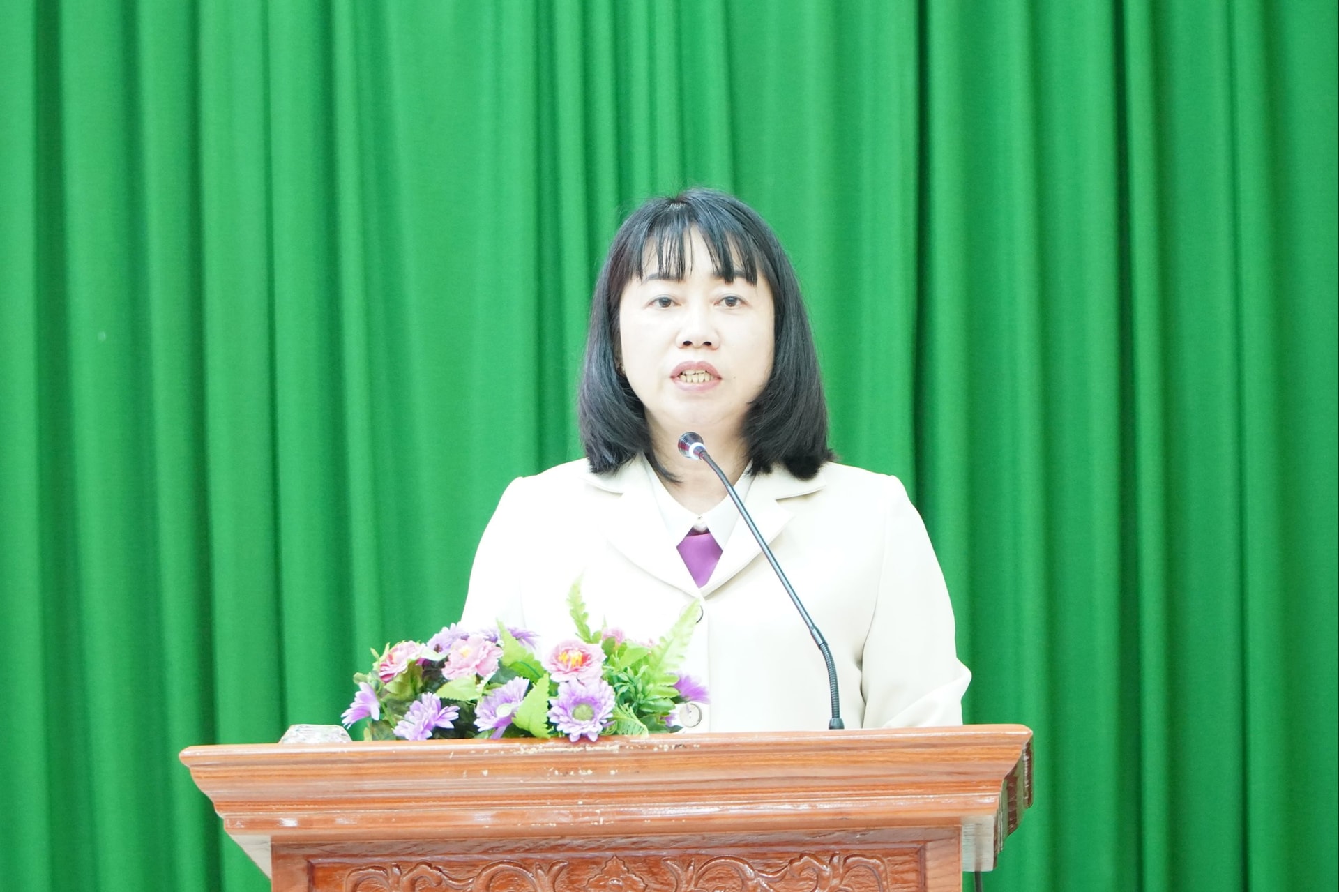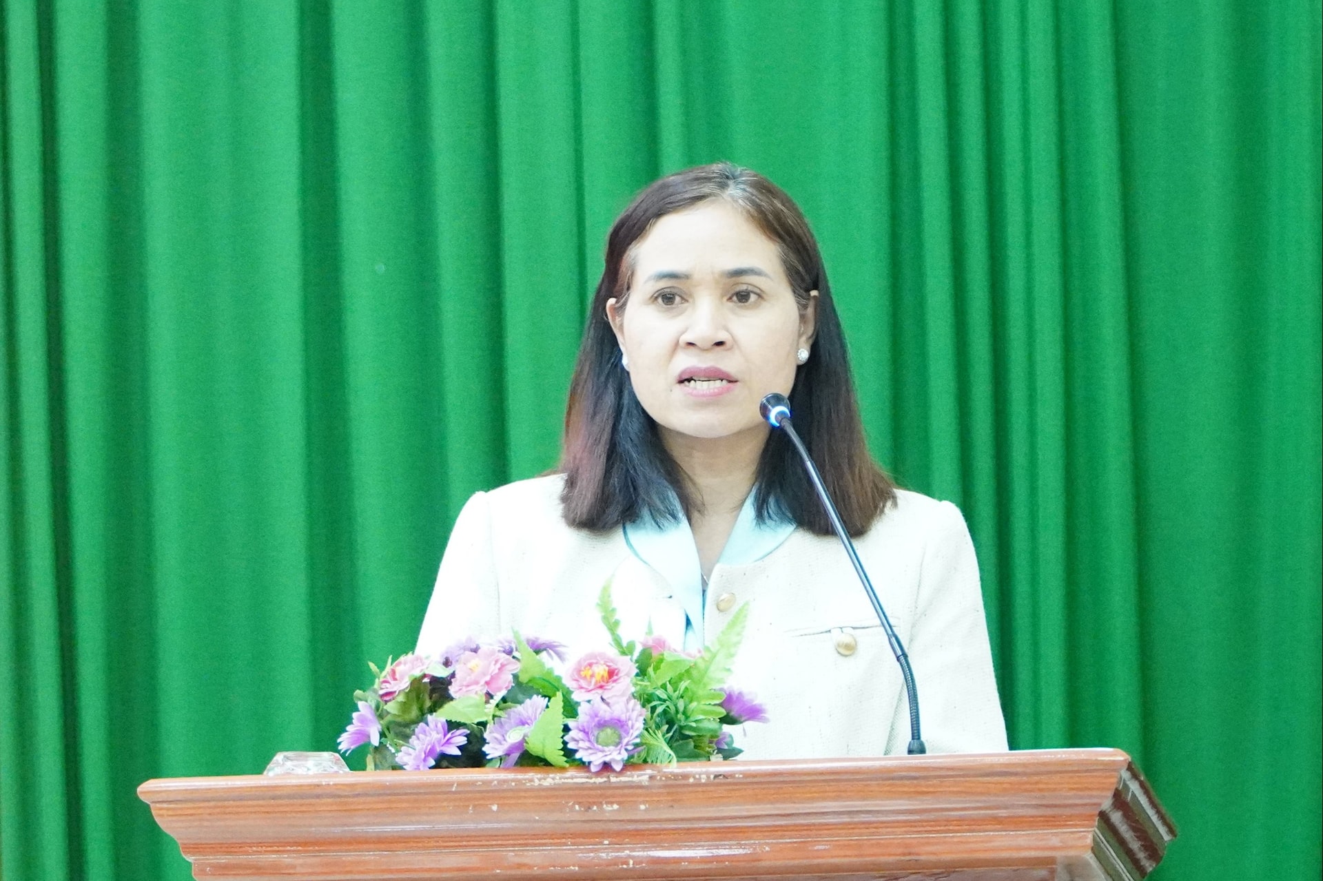 Đại biểu Thị Trãi thông báo với cử tri xã Đức An một số nội dung liên quan đến tỉnh