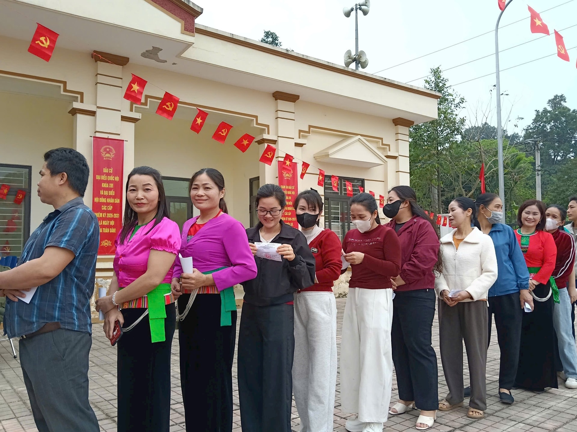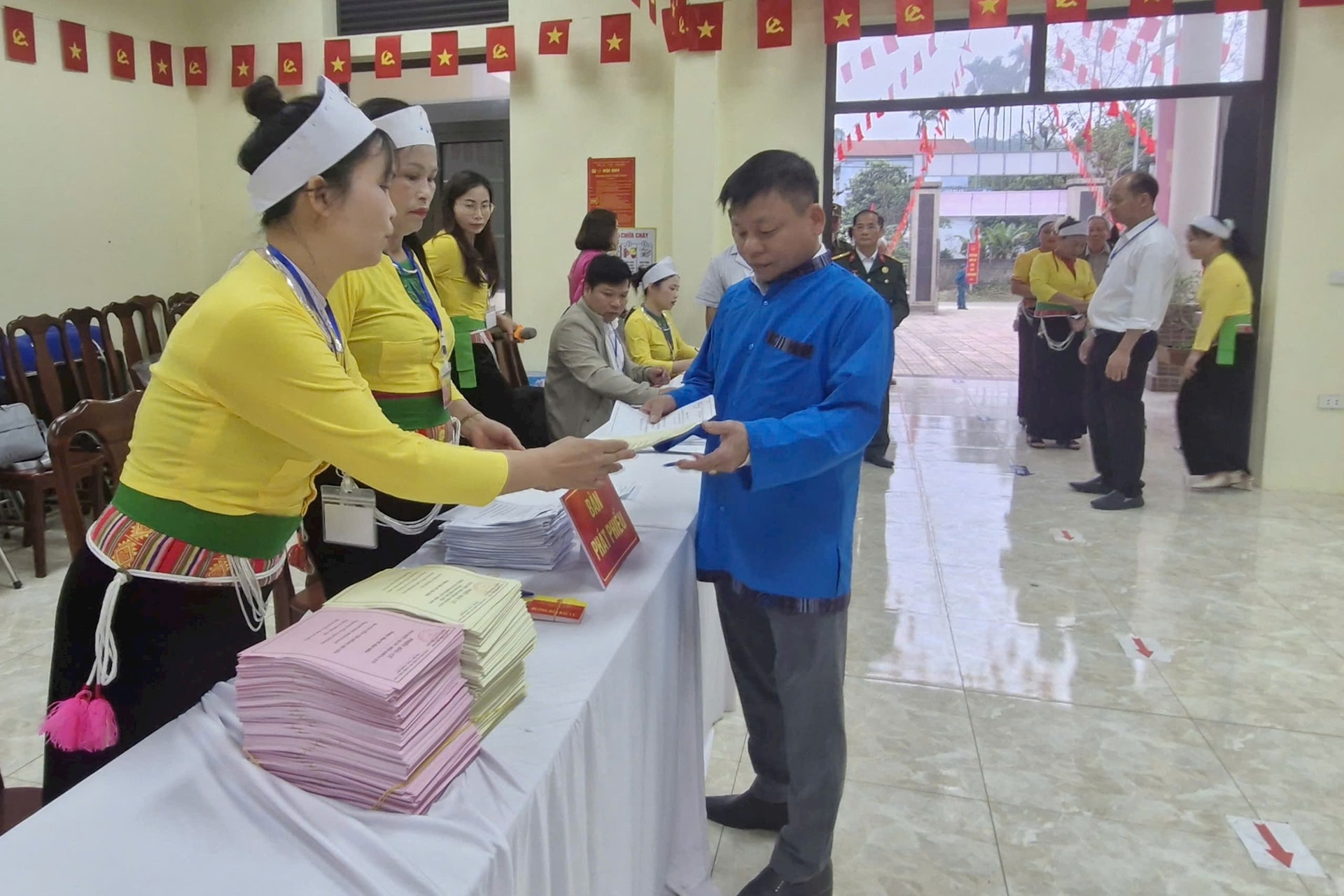 Trong không khí rộn ràng ngày bầu cử, bà con mặc trang phục truyền thống của dân tộc mình phấn khởi, náo nức đi thực hiện quyền công dân của mình. Quá trình tổ chức bầu cử tại đây diễn ra dân chủ, an toàn, đúng quy định. Tổ bầu cử điều hành chặt chẽ các bước theo quy định, tạo điều kiện thuận lợi để cử tri thực hiện quyền công dân của mình.