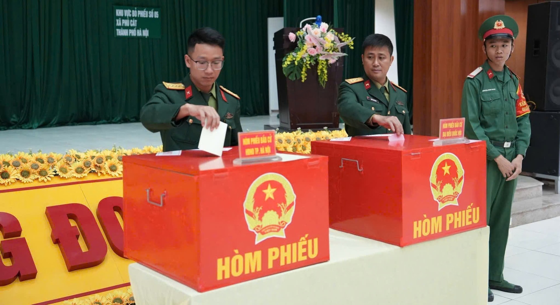 Hòa chung không khí ngày hội non sông, ngay sau lễ khai mạc, các bộ chiến sĩ Trung đoàn 102 - đơn vị đóng quân trên địa bàn xã Phú Cát thuộc khu vực bỏ phiếu số 5, đơn vị bầu cử số 1 đã nghiêm trang cầm thẻ cử tri, xếp hàng ngay ngắn vào nhận phiếu bầu cử và thực hiện việc bầu cử.