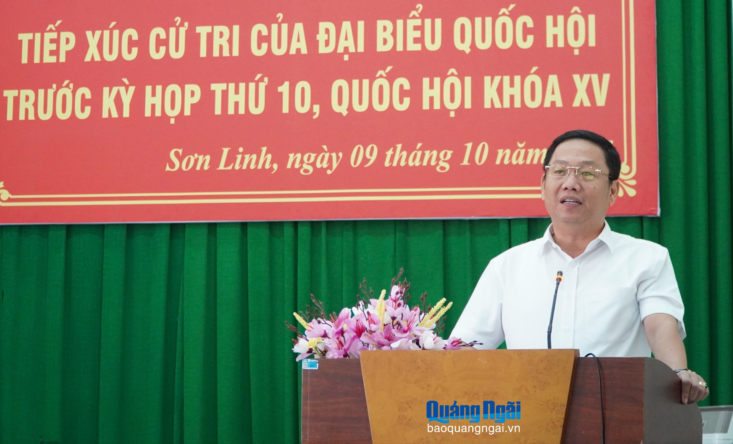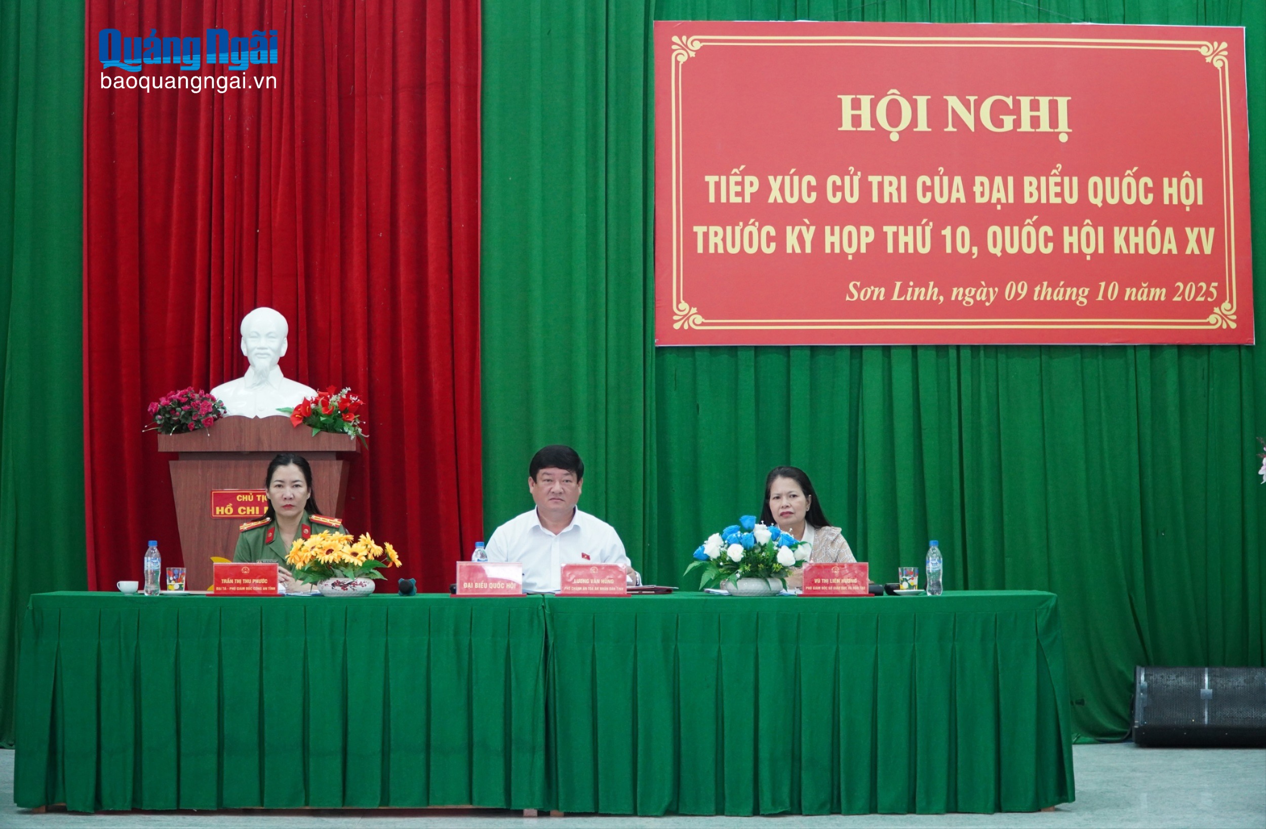 Tại buổi tiếp xúc, cử tri đã có 5 kiến nghị gửi tới Quốc hội. Cụ thể, quan tâm đầu tư xây dựng cầu bắc qua sông Trà Khúc tại khu vực thôn Làng Trá - Làng Lùng và thôn Kà La - Làng Rê nhằm đáp ứng nhu cầu đi lại, giao thương của người dân. Mở rộng tuyến đường ĐH73 từ ngã ba Hà Thành đến trung tâm xã Sơn Linh và tuyến ĐH72 từ Sơn Nham cũ đến xã Sơn Kỳ, hiện còn hẹp, tiềm ẩn mất an toàn giao thông.