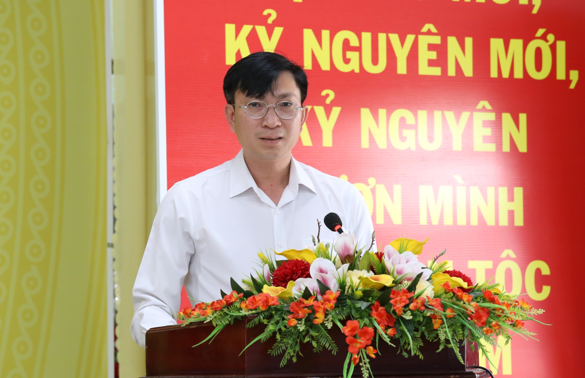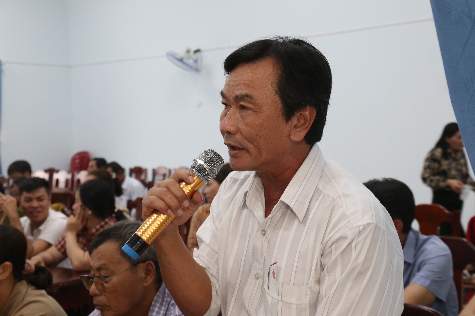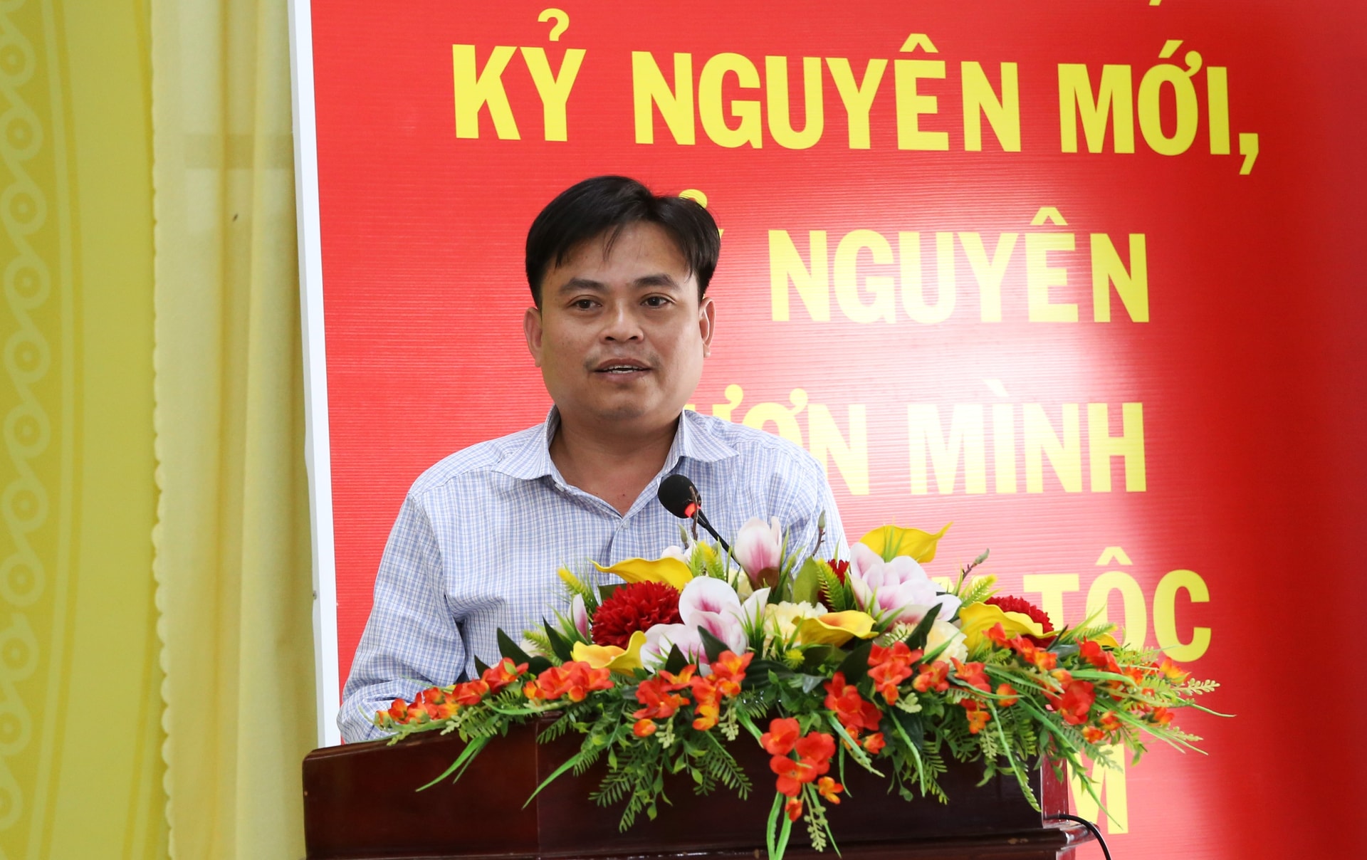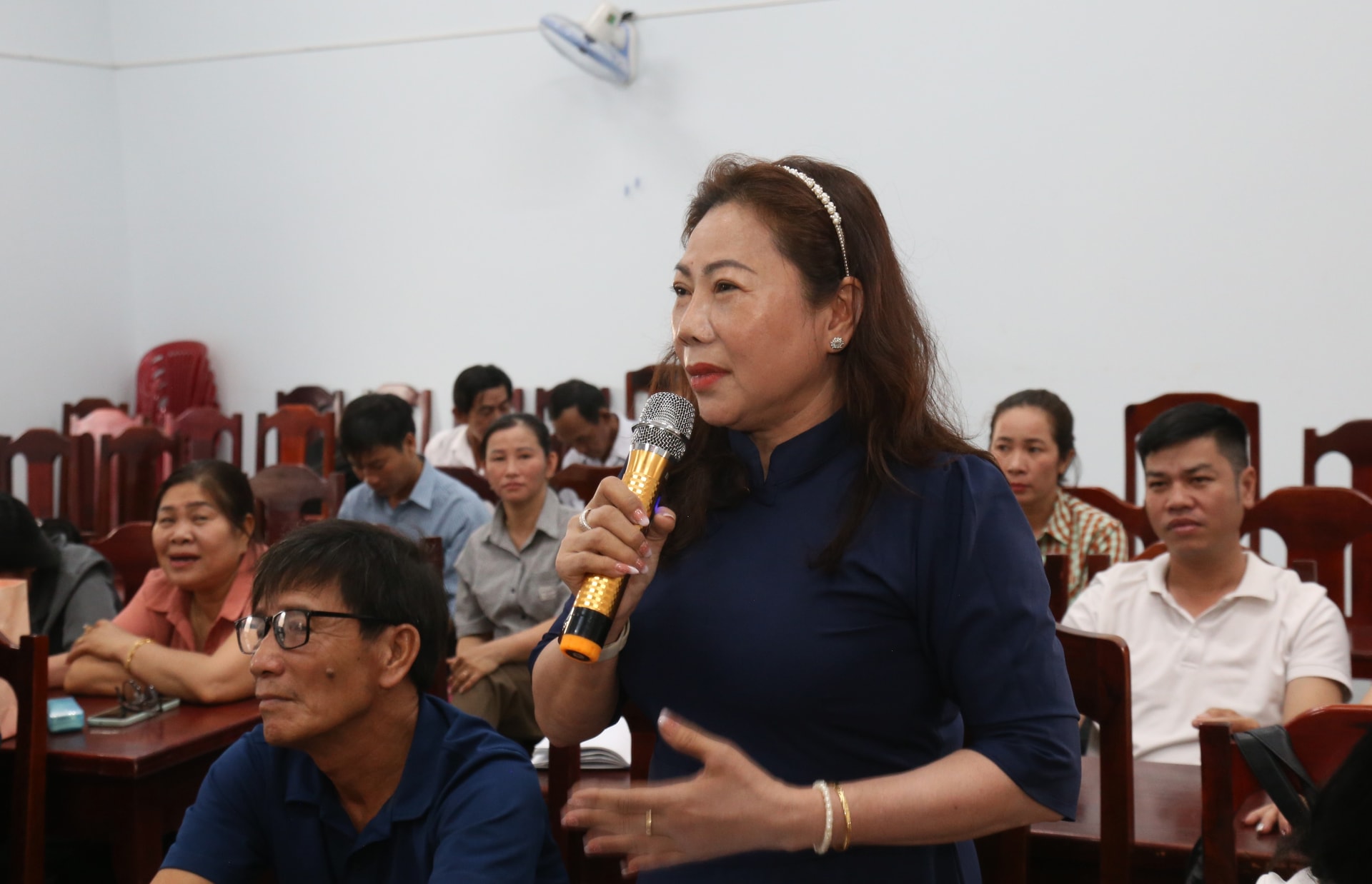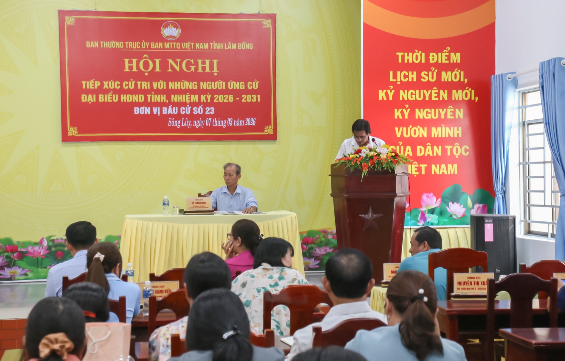 Ứng cử viên Lâm Hồng Tuyên trình bày chương trình hành động tại hội nghị tiếp xúc cử tri