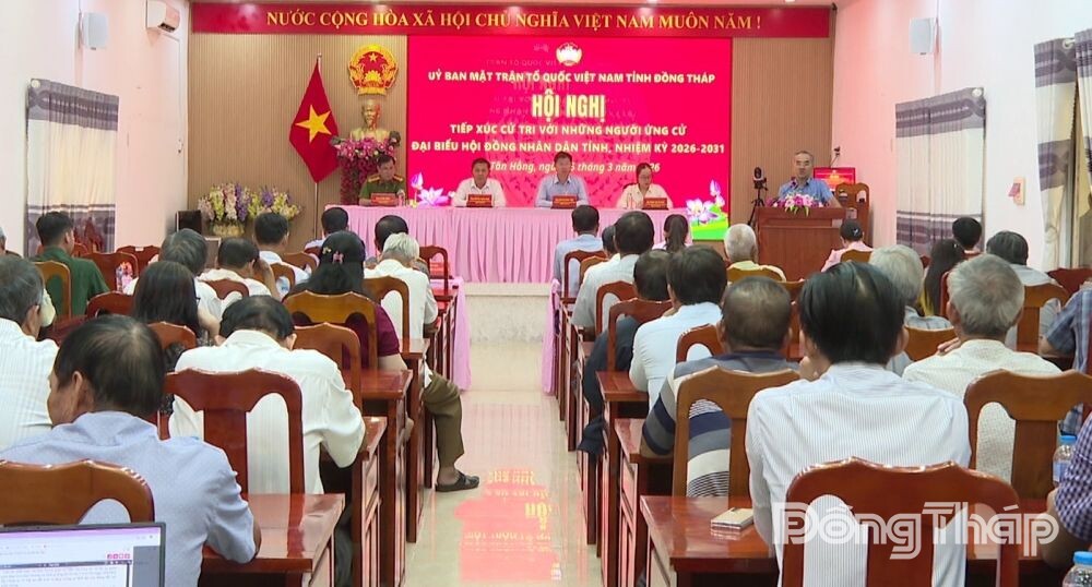 Tại hội nghị, cử tri được nghe tiểu sử tóm tắt và chương trình hành động của từng ứng cử viên Đại biểu HĐND tỉnh Đồng Tháp nhiệm kỳ 2026-2031, đơn vị bầu cử số 1, gồm các đồng chí: Huỳnh Minh Tuấn, Tỉnh ủy viên, Phó Chủ tịch UBND tỉnh Đồng Tháp; Nguyễn Minh Ngọc, Tỉnh ủy viên, Bí thư Đảng ủy, Chủ tịch HĐND xã Tân Hồng; Lý Văn Dũng, Ủy viên Ban Thường vụ Đảng ủy, Trưởng Công an xã Tân Hộ Cơ; Hồng Thị Tứ, công chức Văn phòng HĐND và UBND xã Tân Thành; Phạm Thị Tố Uyên, chuyên viên Trung tâm Phục vụ hành chính công xã An Phước.