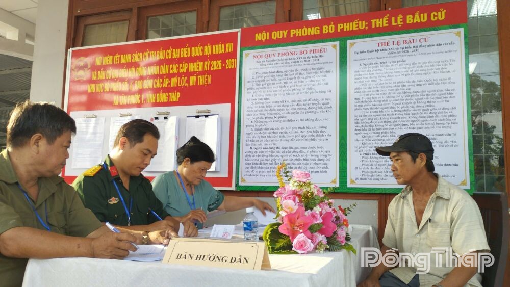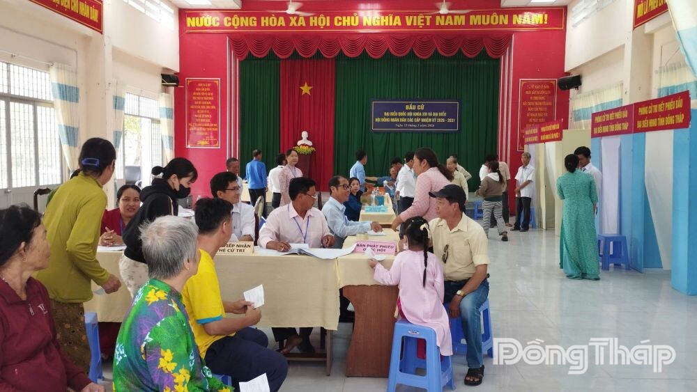 Tại khu vực bỏ phiếu số 1, Ấp 1, nhiều cử tri đã có mặt từ sớm để dự lễ khai mạc chung. Khu vực bỏ phiếu này có 1.266 cử tri tham gia bầu Đại biểu Quốc hội và Đại biểu HĐND tỉnh (2 cấp), trong đó 1.264 cử tri tham gia bầu Đại biểu Quốc hội và Đại biểu HĐND tỉnh, HĐND cấp xã (3 cấp).