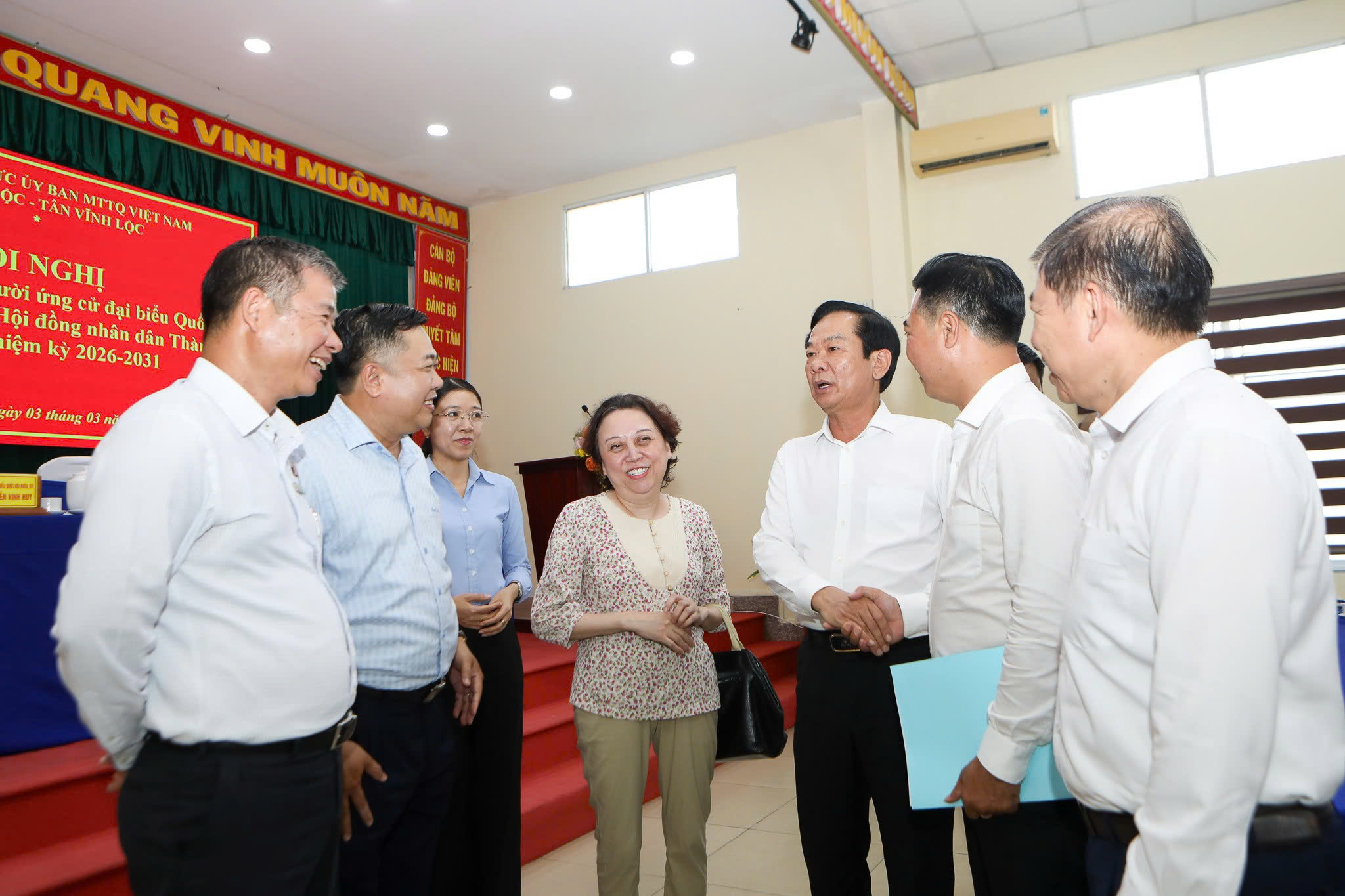 Chiều 3-3, tại Hội trường UBND xã Tân Vĩnh Lộc (huyện Bình Chánh cũ), các ứng cử viên đại biểu Quốc hội (ĐBQH) khóa XVI (đơn vị bầu cử số 13) và đại biểu HĐND TP.HCM khóa XI (đơn vị bầu cử số 39), nhiệm kỳ 2026-2031, đã tiếp xúc trực tiếp với cử tri xã Tân Vĩnh Lộc.