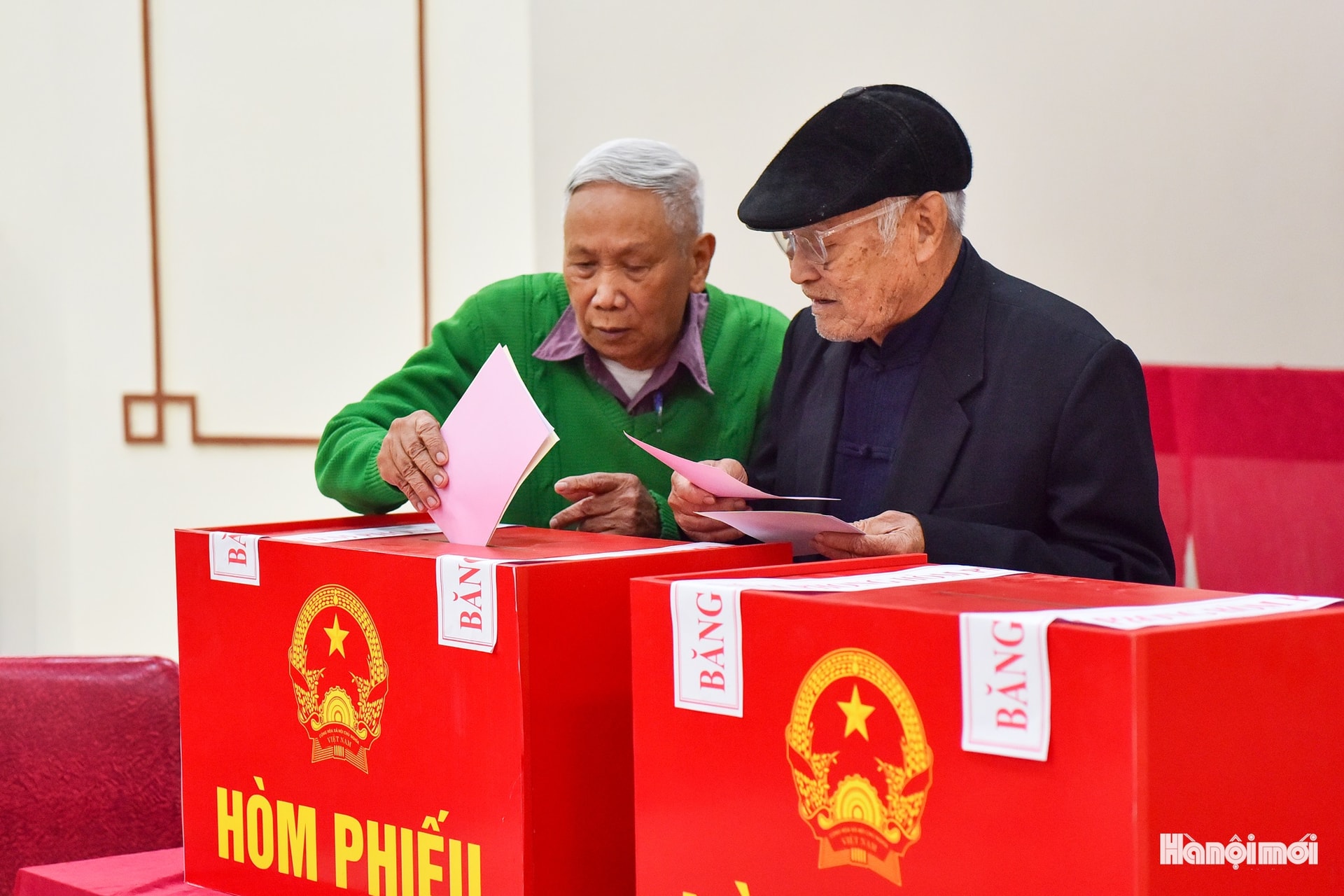 Nhiều cử tri cao tuổi có mặt từ rất sớm để dự lễ khai mạc và thực hiện quyền công dân của mình.