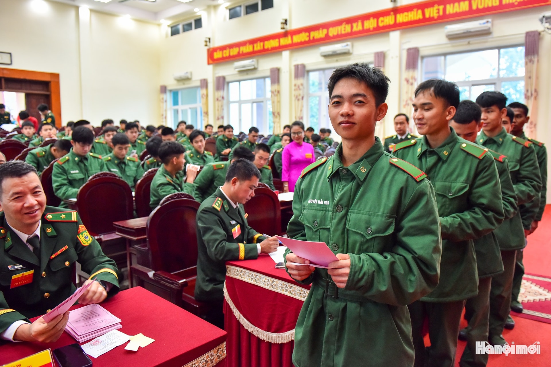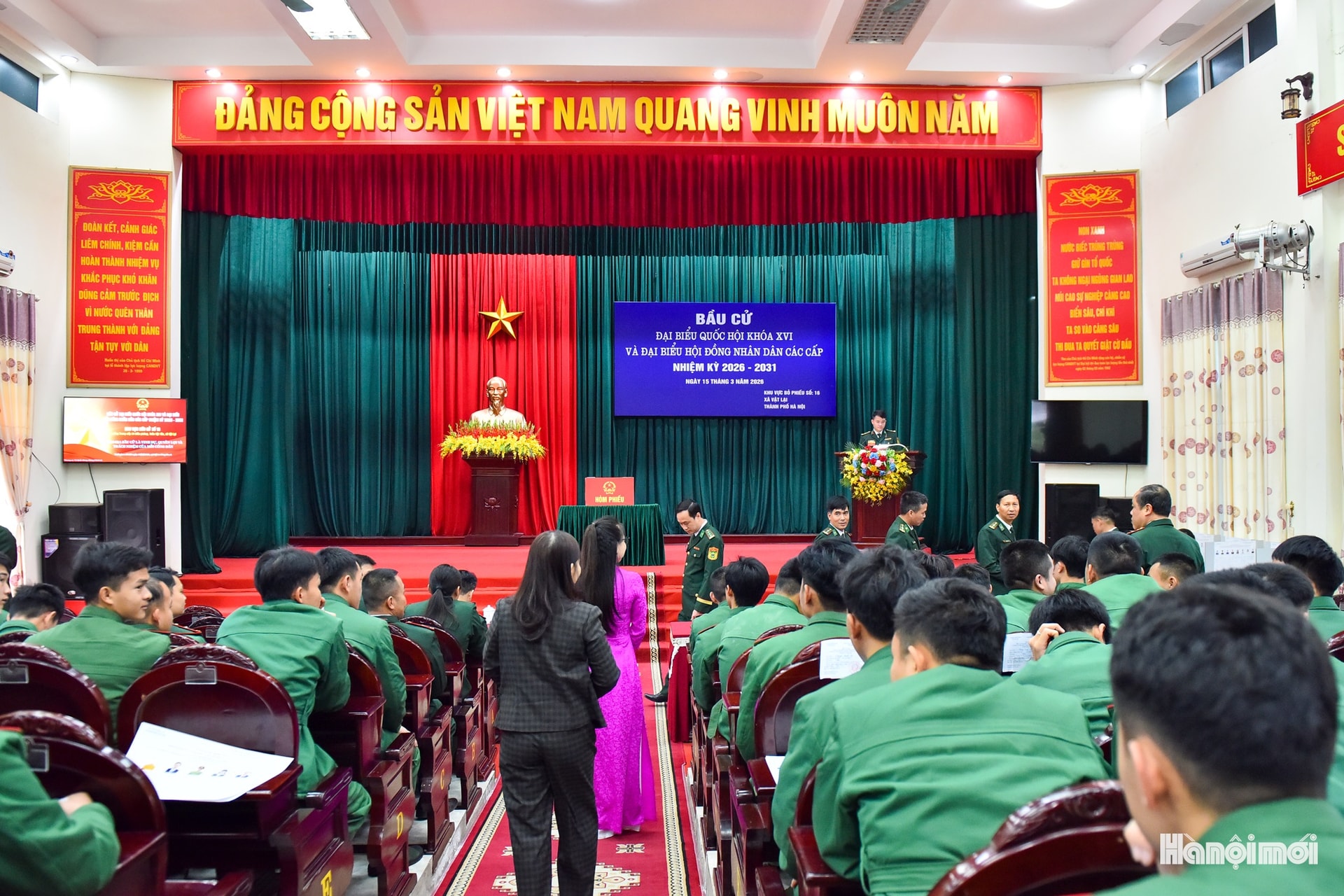 Các chiến sĩ lần lượt thực hiện quyền công dân trong không khí phấn khởi, thể hiện tinh thần trách nhiệm và niềm tin vào ngày hội bầu cử.