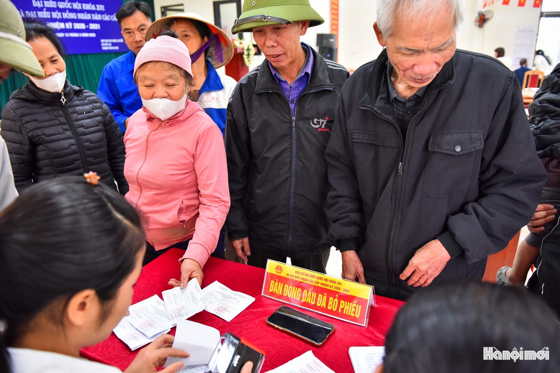 Từ sáng sớm, đông đảo cử tri xã Vật Lại đã có mặt tại điểm bầu cử, tạo nên không khí phấn khởi, trang trọng của ngày hội toàn dân.
