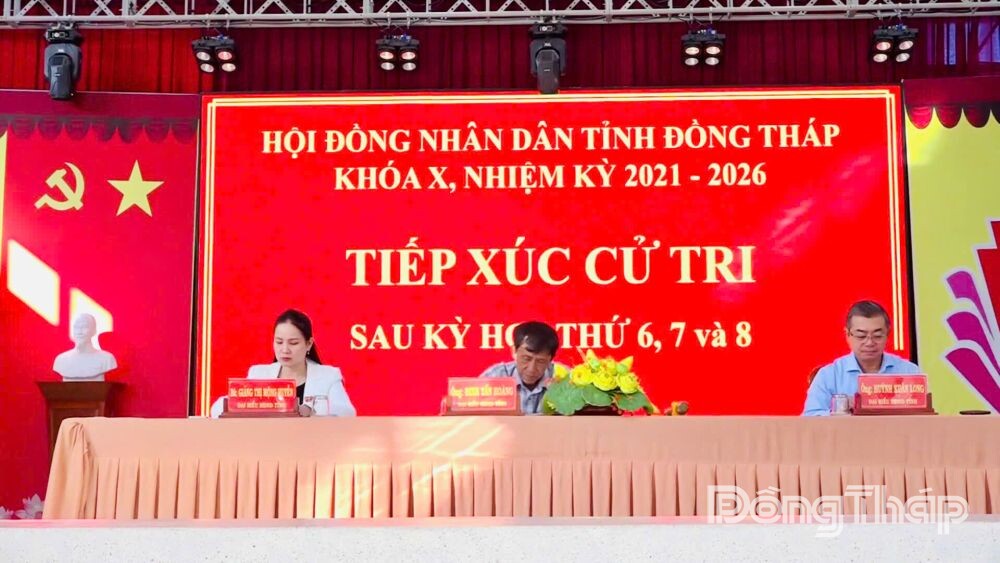 Tại buổi tiếp xúc, cử tri xã Vĩnh Bình nghe đại biểu HĐND tỉnh báo cáo kết quả Kỳ họp thứ 6, 7 và Kỳ họp thứ 8 của HĐND tỉnh Đồng Tháp khóa X, nhiệm kỳ 2021 - 2026; thông tin kết quả giải quyết các ý kiến, kiến nghị của cử tri trước Kỳ họp thứ 7 của HĐND tỉnh.