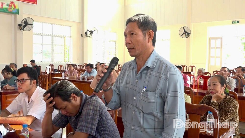 Cử tri xã Vĩnh Bình phát biểu tại buổi tiếp xúc.