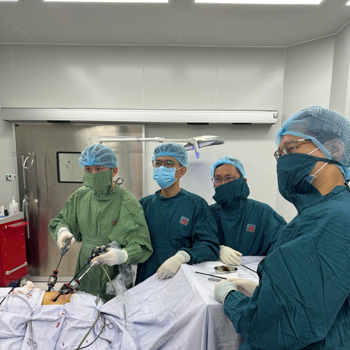 Ekip y bác sĩ Đơn vị Tiết niệu Bệnh viện An Bình thực hiện phẫu thuật nội soi cắt bán phần thận