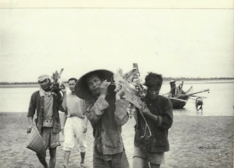 Dân quân vớt xác máy bay Mỹ bị ta bắn rơi tại Lạch Trường ngày 5/8/1964. Ảnh: Tư liệu.