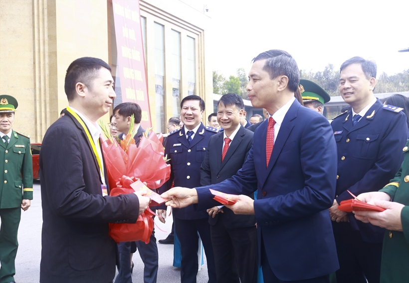 Đón đoàn khách “xông đất” cửa khẩu trong buổi sáng đầu năm, đồng chí Vũ Văn Diện, Ủy viên Ban Thường vụ Tỉnh ủy, Phó Chủ tịch Thường trực UBND tỉnh Quảng Ninh đã trực tiếp gửi lời chúc mừng năm mới, tặng hoa và lì xì tới du khách. Đoàn khách gồm 200 người đến từ Nam Ninh (Trung Quốc).