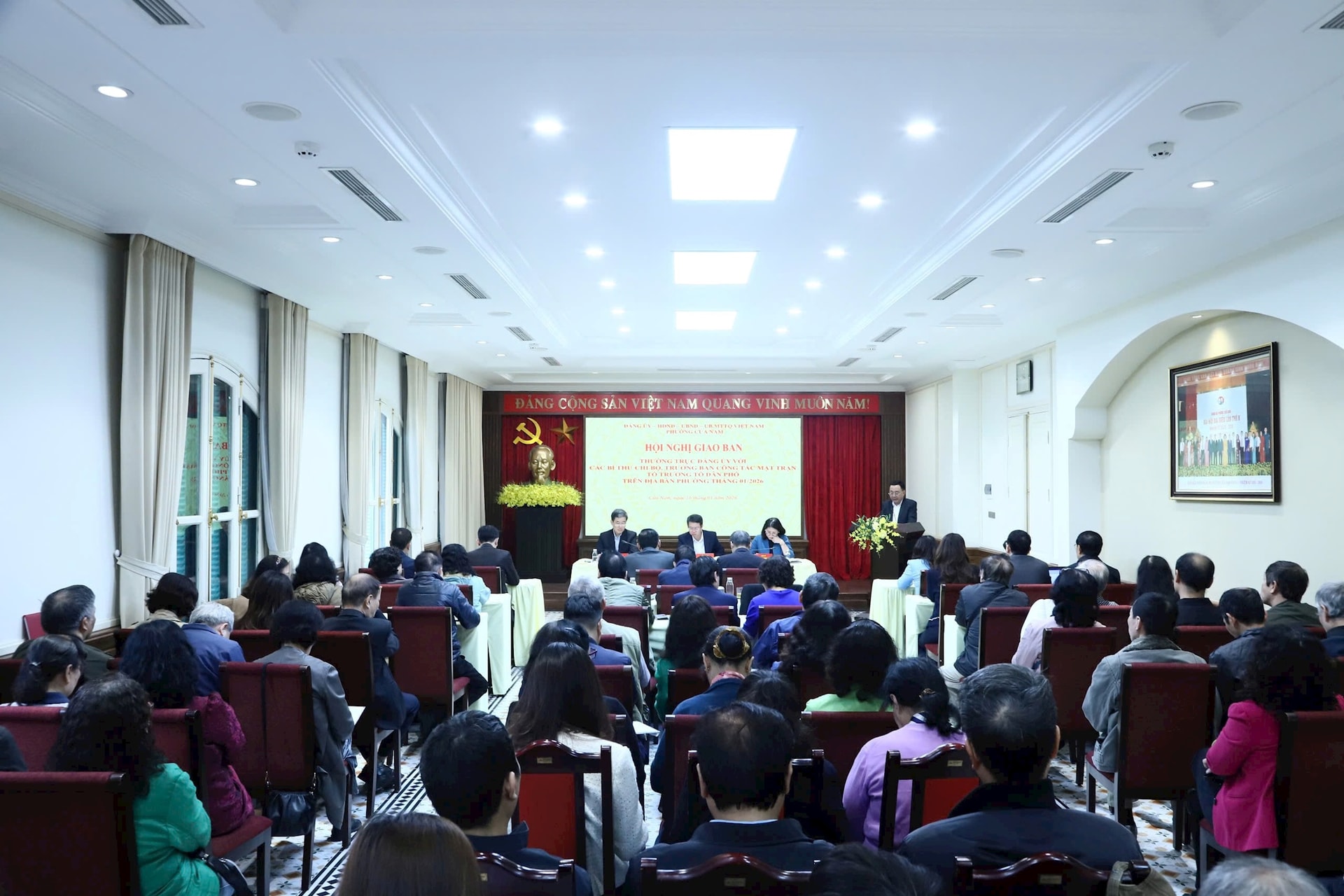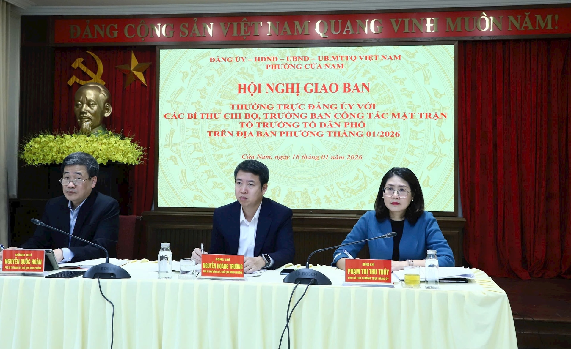 Các đồng chí lãnh đạo phường Cửa Nam chủ trì hội nghị. Ảnh: Hương Ly