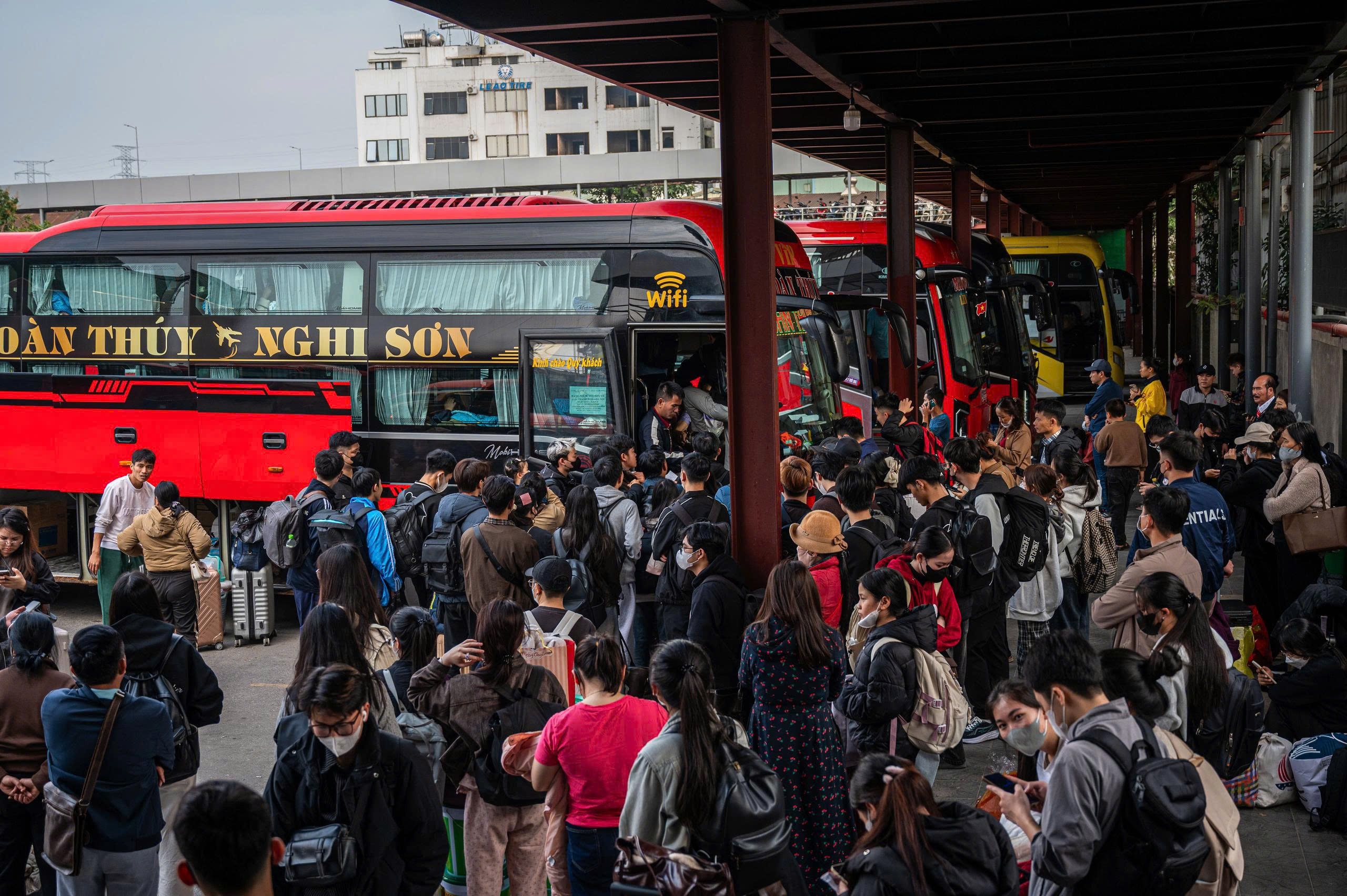 Thời điểm 16h30, tại bến xe khách Mỹ Đình (phường Nam Từ Liêm, Hà Nội), ghi nhận người dân di chuyển về quê bằng xe khách không nhiều, chủ yếu phục vụ khách về quê Tết dương các tỉnh Yên Bái, Lạng Sơn, Lào Cai, Nam Định...