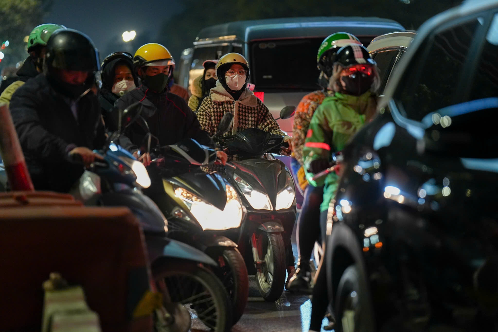 Người dân lỉnh kỉnh đồ đạc rời thành phố để về quê nghỉ lễ dịp tết Dương lịch. Đa phần người dân lựa chọn đi xe máy về quê nghỉ lễ là ở các tỉnh lân cận Hà Nội như Hưng Yên, Ninh Bình, Hải Phòng...