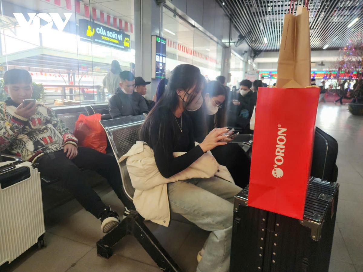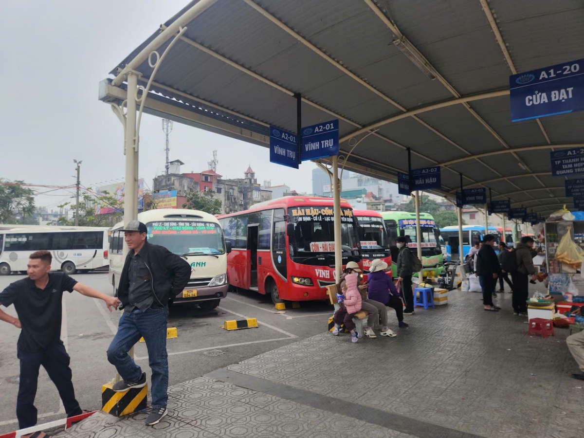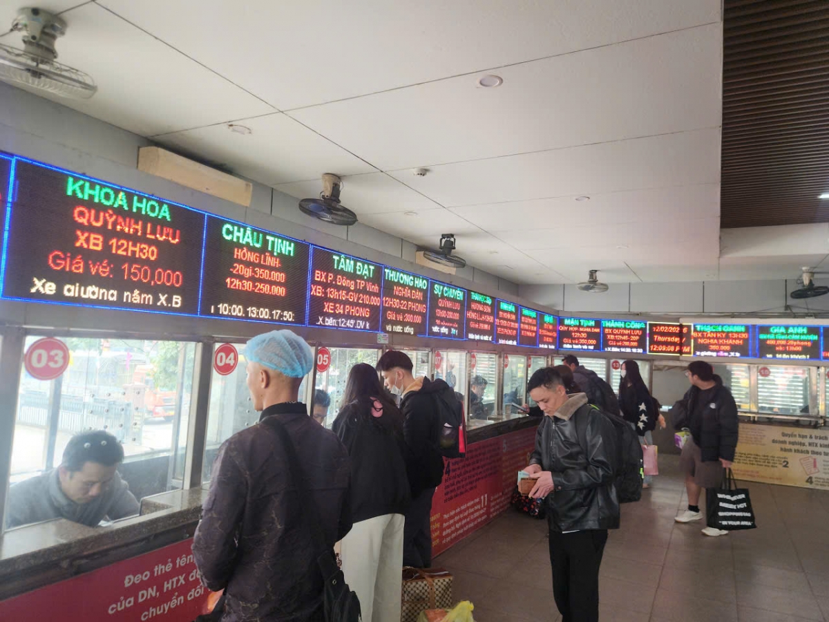 Sáng đầu kỳ nghỉ Tết, Bến xe Giáp Bát đông người về quê nhưng không còn cảnh chen chúc, ùn ứ.