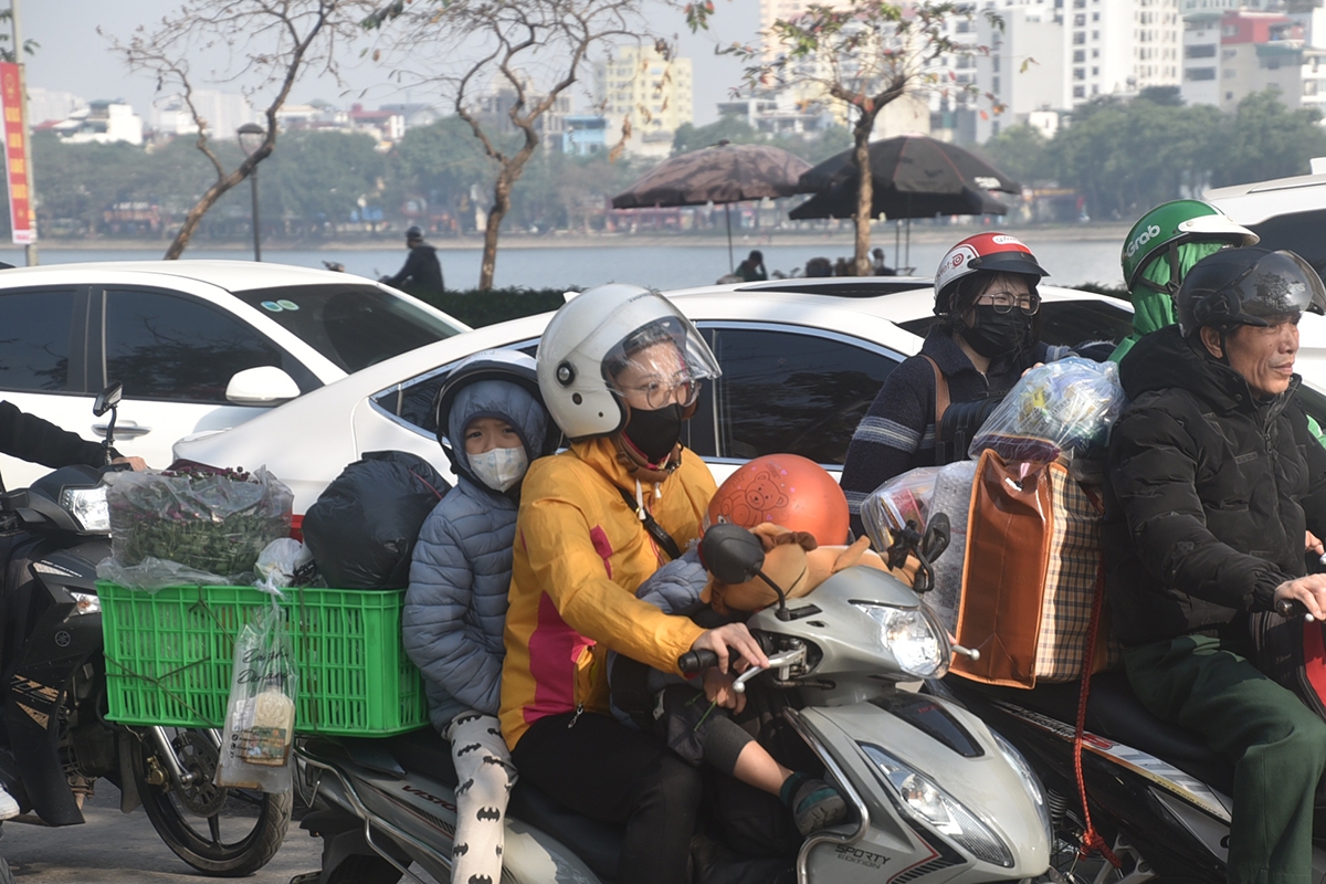 Người dân với đồ đạc di chuyển bằng xe máy về quê ăn Tết.
