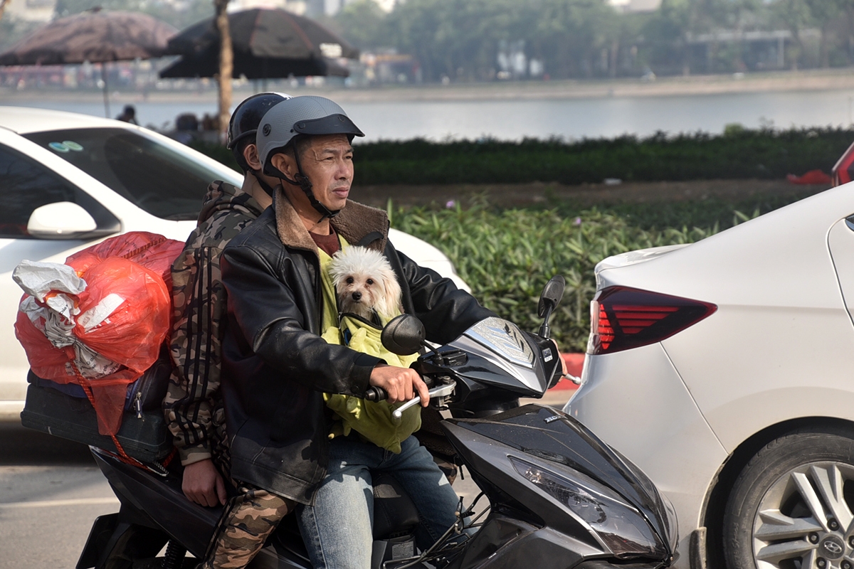 Ngoài đồ đạc nhiều gia đình còn chở cả thú cưng về quê ăn Tết.
