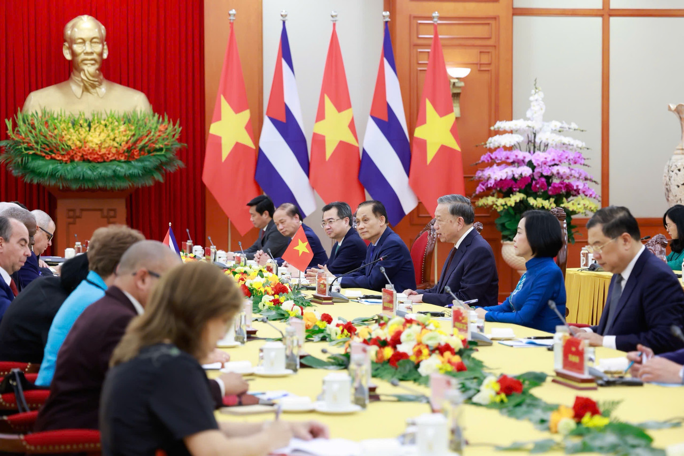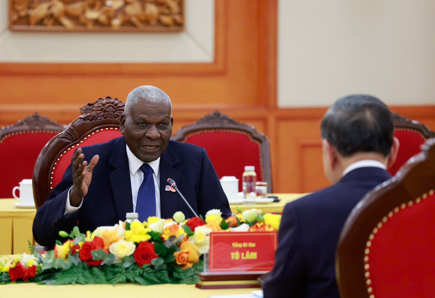 Tổng Bí thư Tô Lâm nhấn mạnh quyết tâm của Đảng, Nhà nước và Nhân dân Việt Nam trong việc củng cố và tăng cường hơn nữa mối quan hệ hữu nghị đặc biệt, đoàn kết truyền thống, hợp tác toàn diện giữa Việt Nam và Cuba; nhấn mạnh quan hệ giữa hai Đảng là nền tảng chính trị và định hướng cho phát triển quan hệ hợp tác song phương trên tất cả các lĩnh vực.
