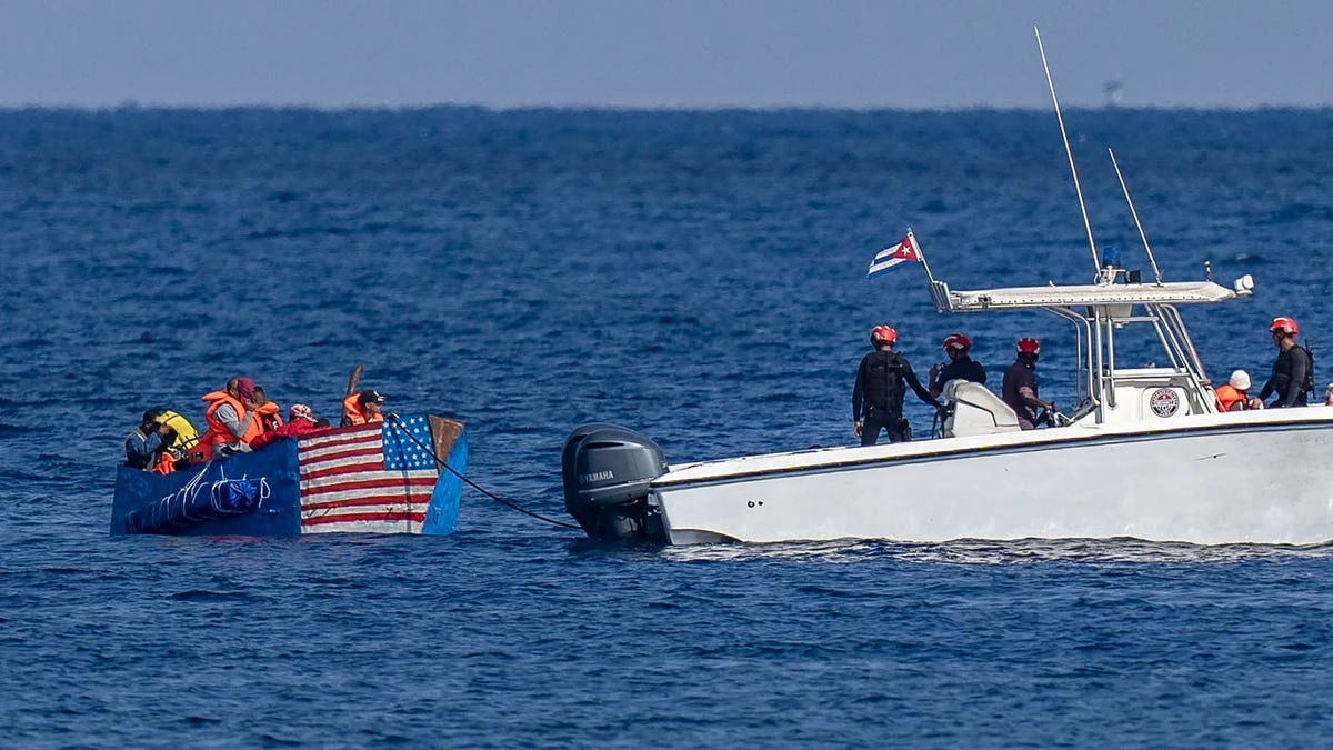 Một chiếc bè tạm treo cờ Mỹ đã bị lực lượng chức năng Cuba chặn lại ngoài khơi thủ đô Havana. Ảnh: AP.