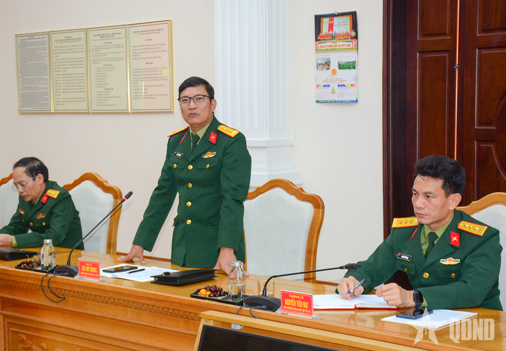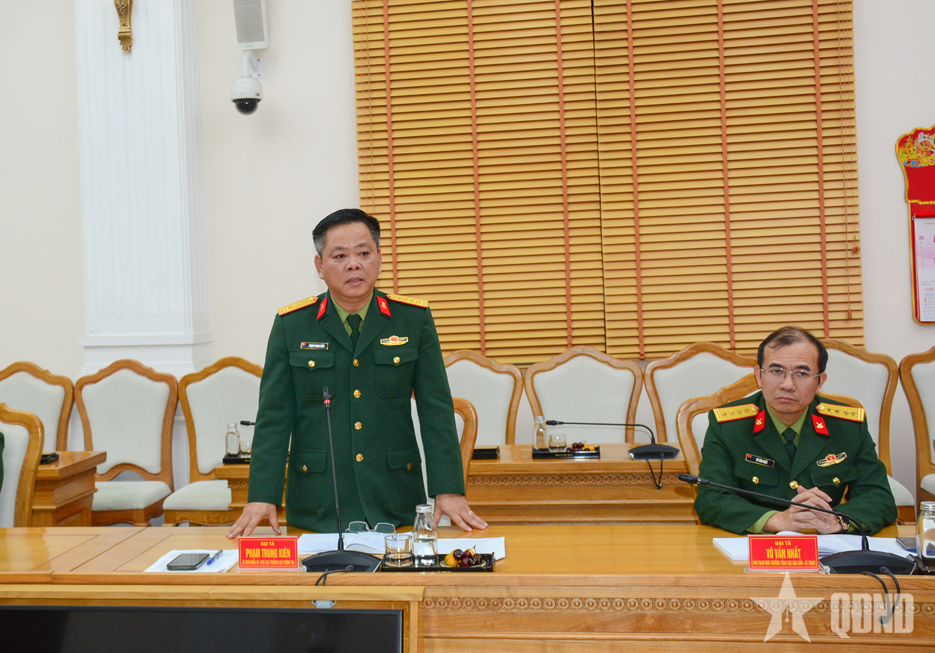 Thiếu tướng Nguyễn Đình Chiêu, Phó chính ủy Tổng cục HC-KT chủ trì hội nghị.