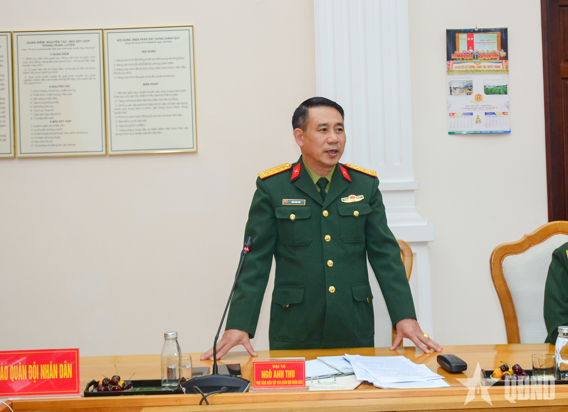 Phát biểu tại hội nghị, thay mặt Đảng ủy, Ban Biên tập và cán bộ, phóng viên, biên tập viên Báo QĐND, Đại tá Ngô Anh Thu trân trọng cảm ơn lãnh đạo, chỉ huy Tổng cục HC-KT và các cơ quan, đơn vị của Tổng cục đã luôn giúp đỡ, tạo điều kiện cho cán bộ, phóng viên của Báo trong quá trình tác nghiệp.