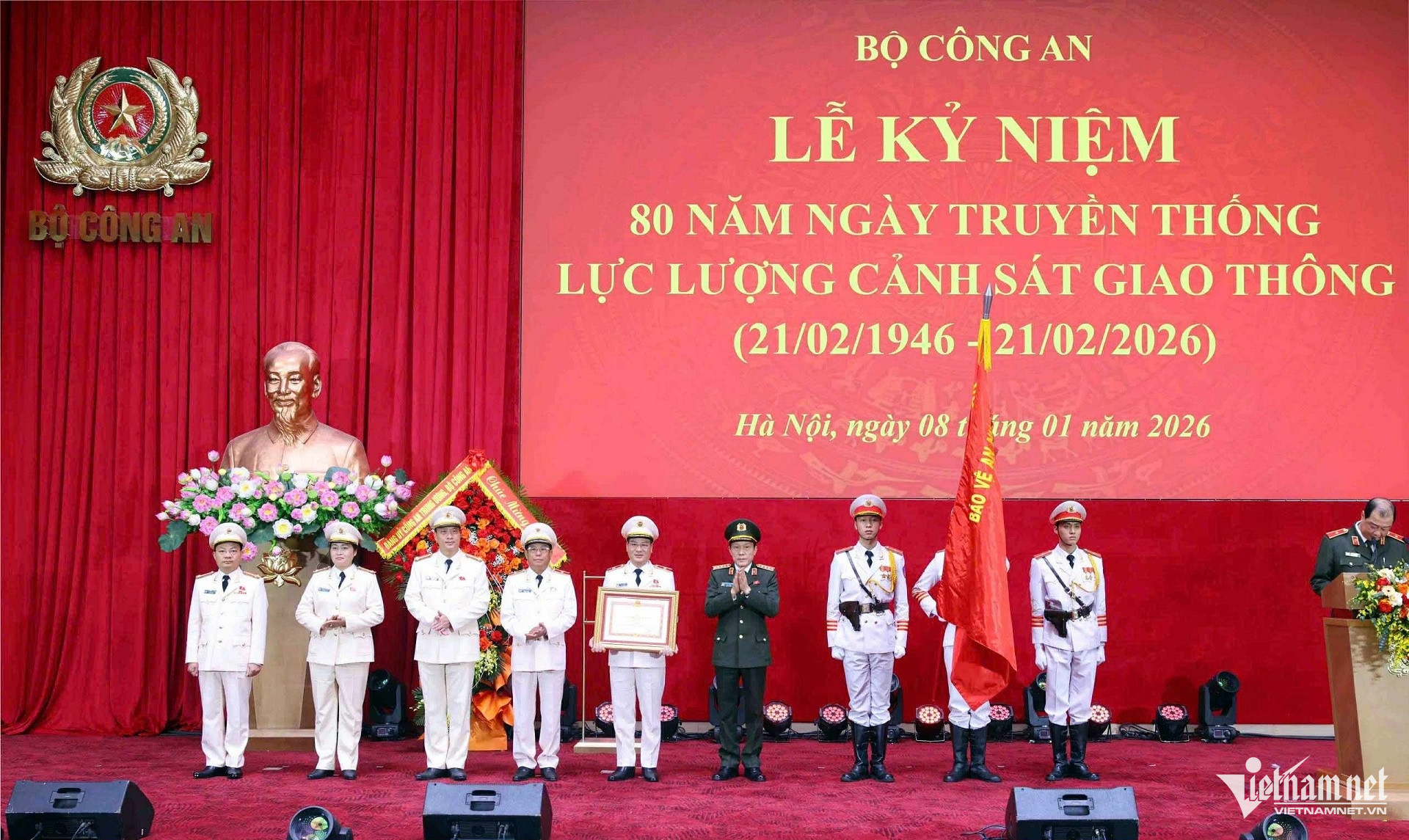 Thừa ủy quyền của Chủ tịch nước, Bộ trưởng Lương Tam Quang trao Huân chương Quân công hạng Nhất tặng Cục CSGT. Ảnh: Đình Hiếu