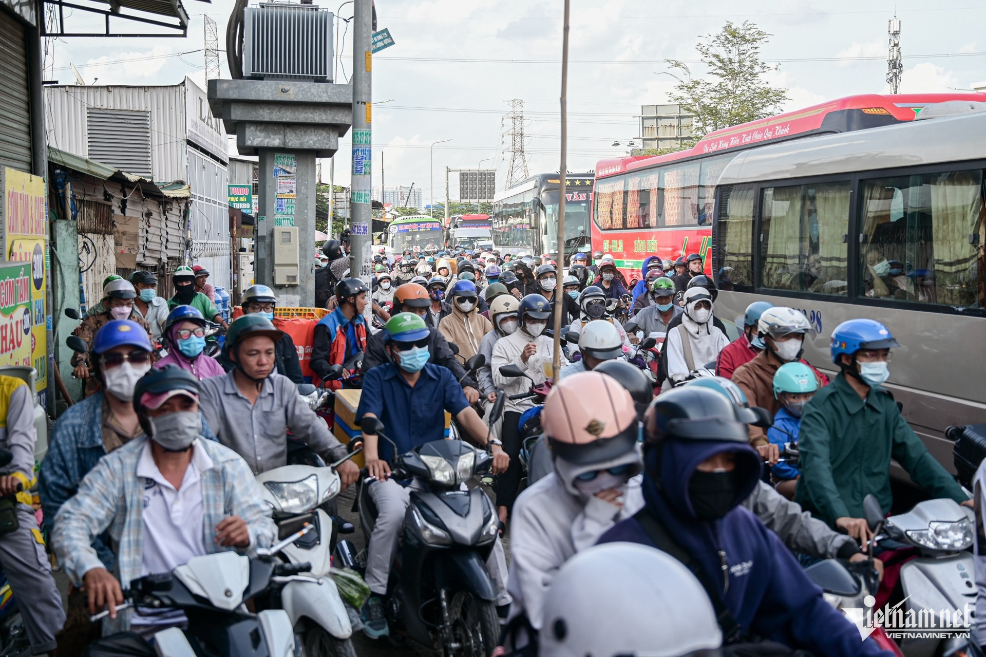 Giao thông ùn ứ trên các tuyến đường Kinh Dương Vương, Quốc lộ 1 (TPHCM) đi các tỉnh miền Tây. Ảnh: Nguyễn Huế.