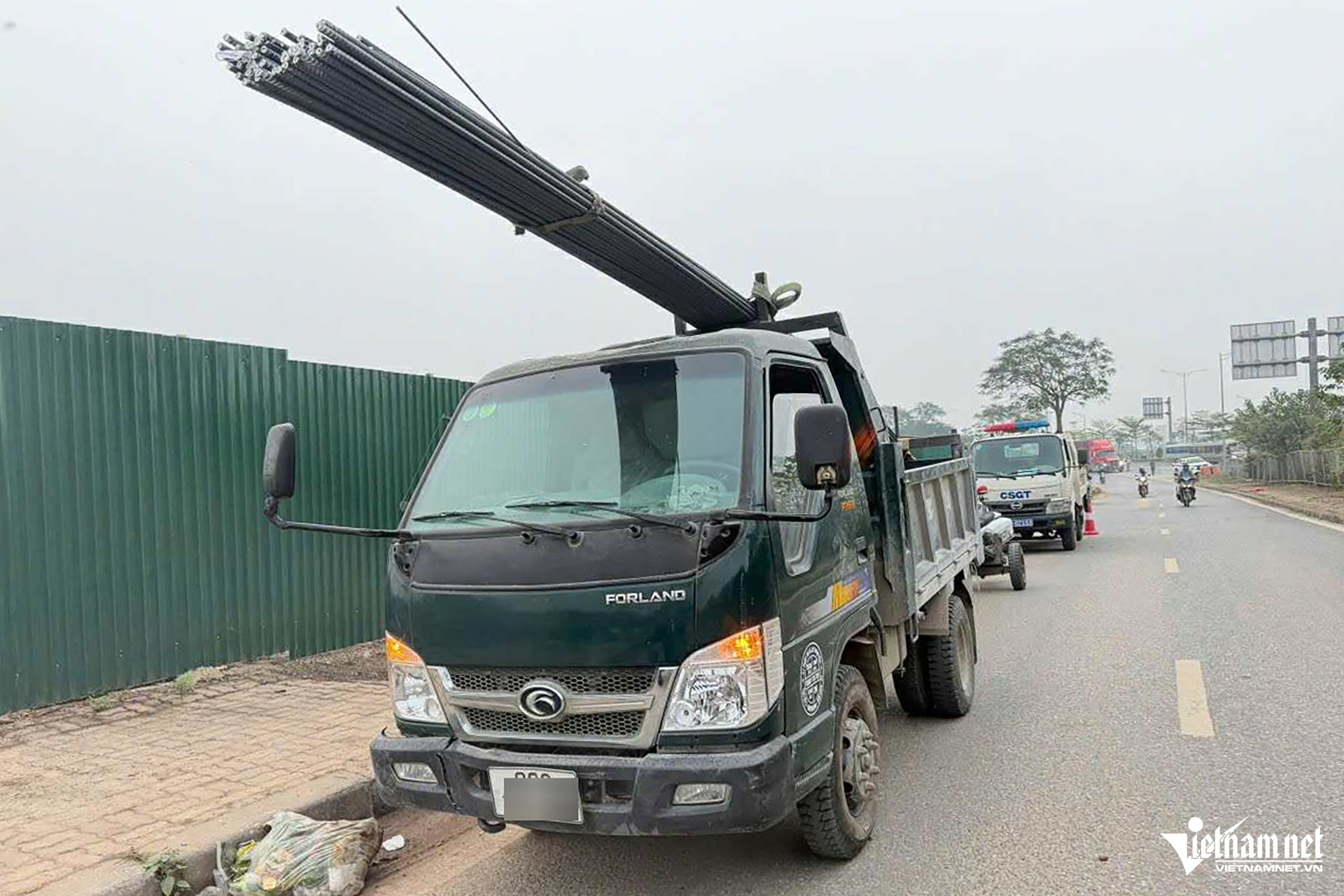 Ô tô chở bó sắt dài gần 12m bị CSGT xử lý. Ảnh: Đình Hiếu