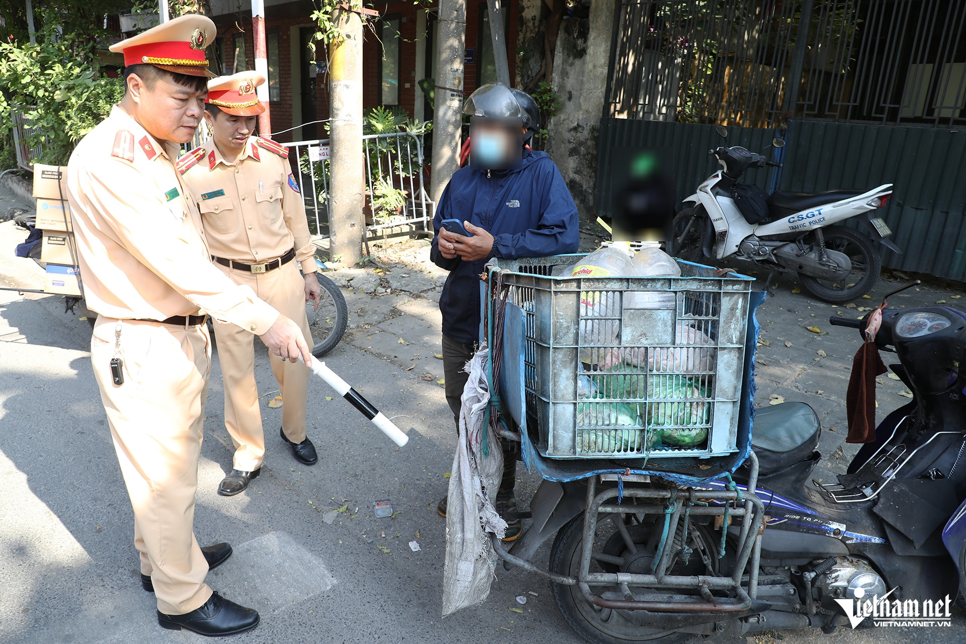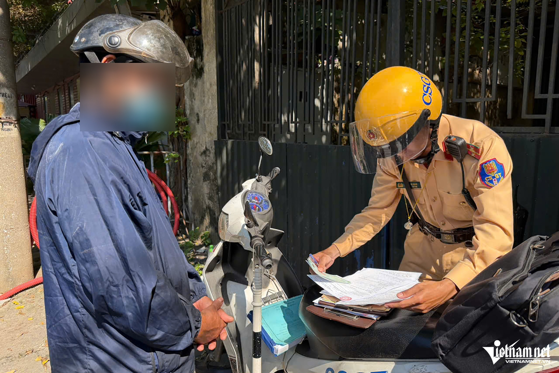 Tổ công tác Đội CSGT đường bộ số 1 (Phòng CSGT Công an Hà Nội) lập biên bản xử phạt tài xế V.B. về lỗi “xe máy gắn biển số bị che lấp”. Anh V.B. bị phạt 5 triệu đồng và trừ 6 điểm trên giấy phép lái xe.
