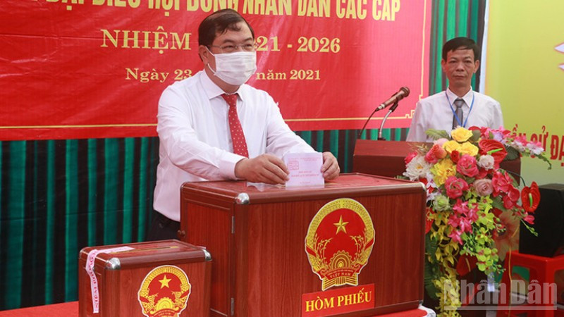 Đại biểu nô nức đi bầu cử Quốc hội khóa XIV nhiệm kỳ 2021-2026 tại Nam Định (Ninh Bình). (Ảnh: Báo Nhân Dân)