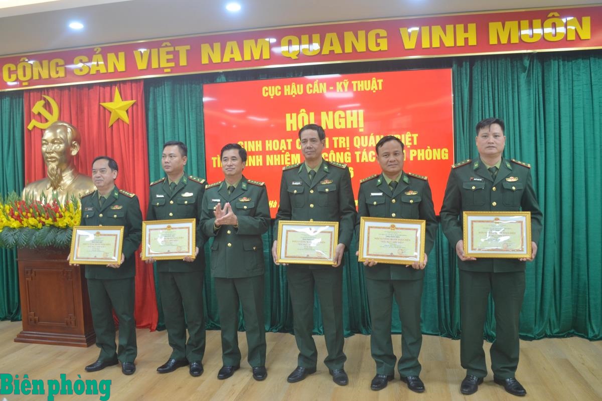 Thừa ủy quyền của thủ trưởng cấp trên, Đại tá Nguyễn Văn Thủy, Phó Cục trưởng Cục Hậu cần - Kĩ thuật Bộ đội Biên phòng trao danh hiệu "Đơn vị vững mạnh toàn diện, "Mẫu mực, tiêu biểu" năm 2025 cho các tập thể. Ảnh: TK