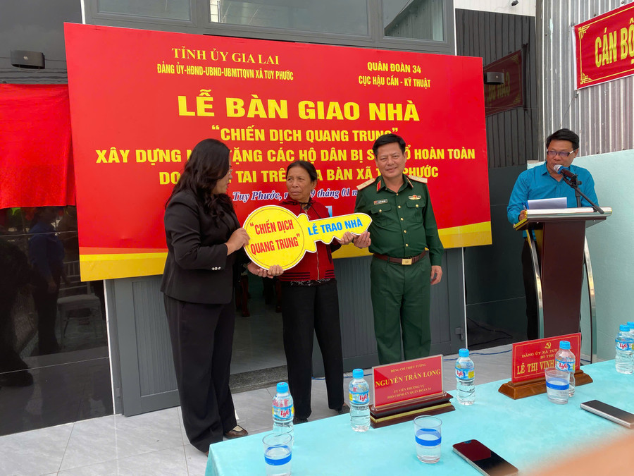 Phát biểu tại lễ bàn giao nhà, Đại tá Nguyễn Thế Hùng, Chính ủy Cục Hậu cần - Kỹ thuật, Quân đoàn 34 nhấn mạnh: với phương châm “Thần tốc cơ động - Thần tốc thi công - Thần tốc về đích”, cán bộ, chiến sĩ đơn vị đã vượt qua khó khăn, thách thức, thi công vượt tiến độ đề ra, bảo đảm chất lượng nhà ở cho người dân.