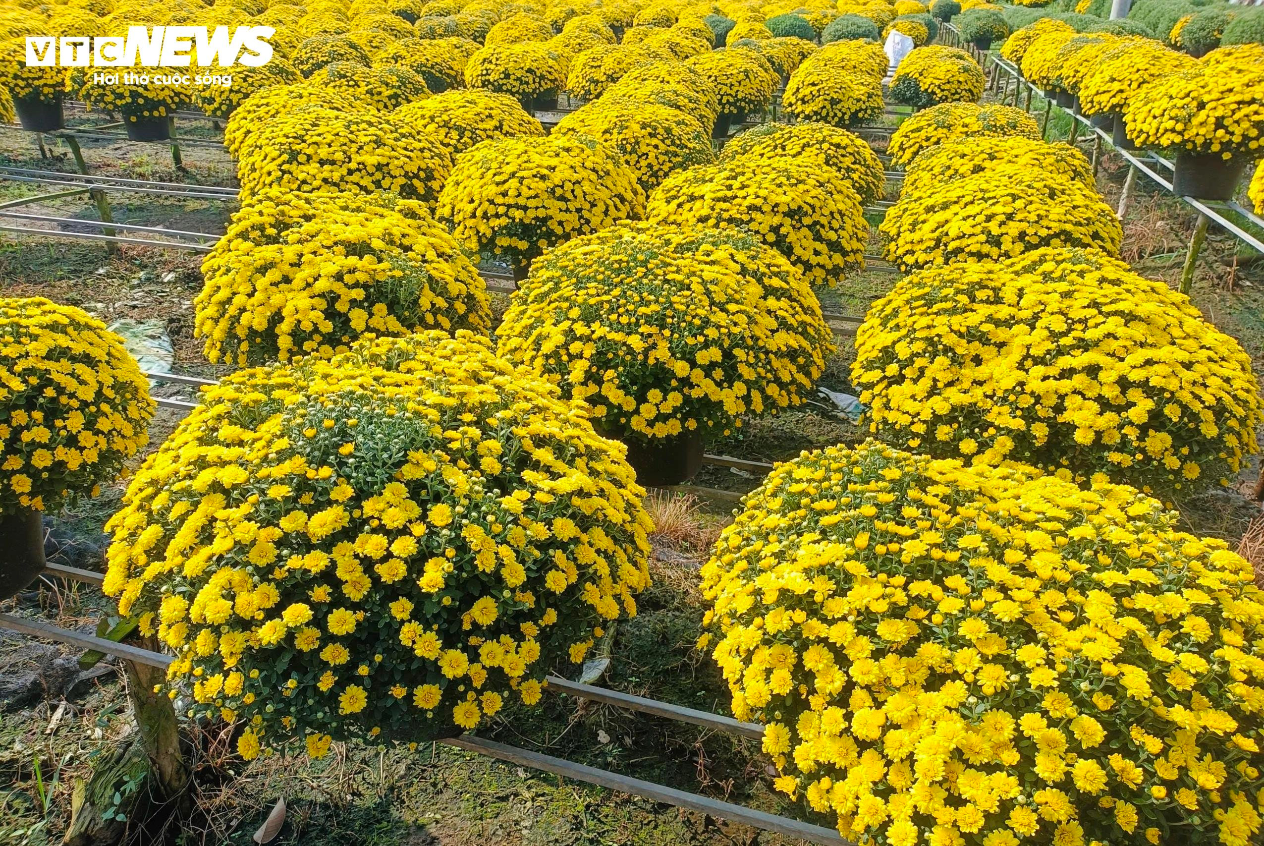 Giá bán tại vườn hiện dao động khoảng 120.000-140.000 đồng/cặp (tương đương 60.000-70.000 đồng/chậu) đối với loại có đường kính từ 90 cm trở lên. Mức giá này thấp hơn đáng kể so với năm ngoái, khi cúc mâm xôi được bán khoảng 170.000 đồng/cặp.
