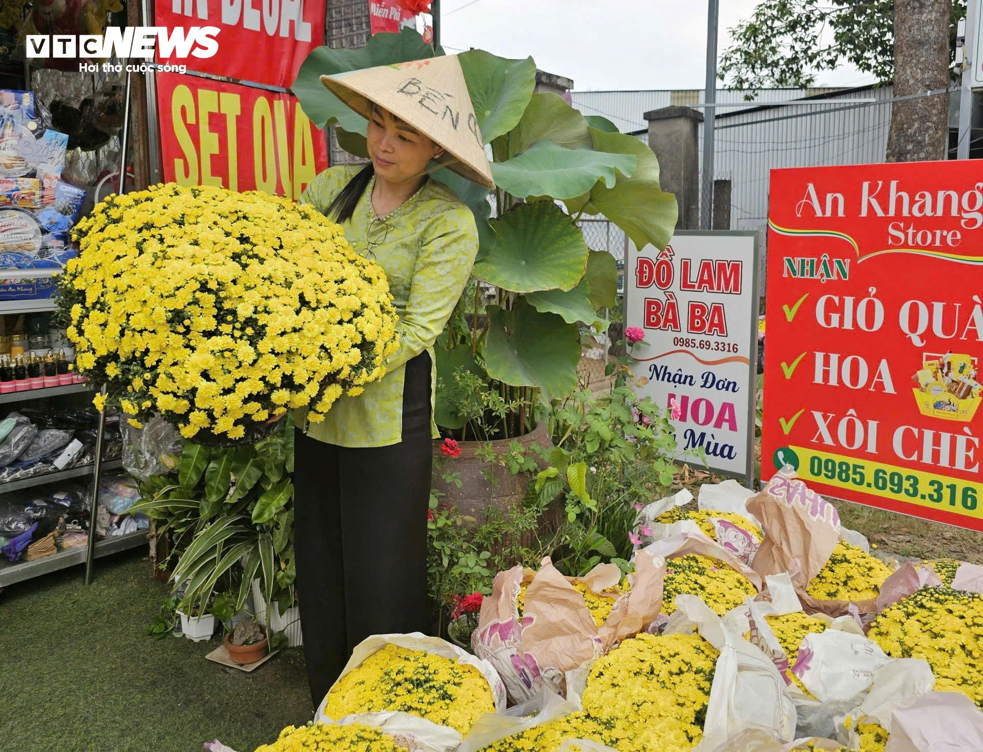 Chứng kiến cảnh bà con trồng hoa lao đao vì cúc mâm xôi nở sớm, chị Thu Ba - chủ Shop An Khang (xã Phú Túc, tỉnh Vĩnh Long) - còn quyết định đứng ra bán hoa giúp các nhà vườn ở Chợ Lách.