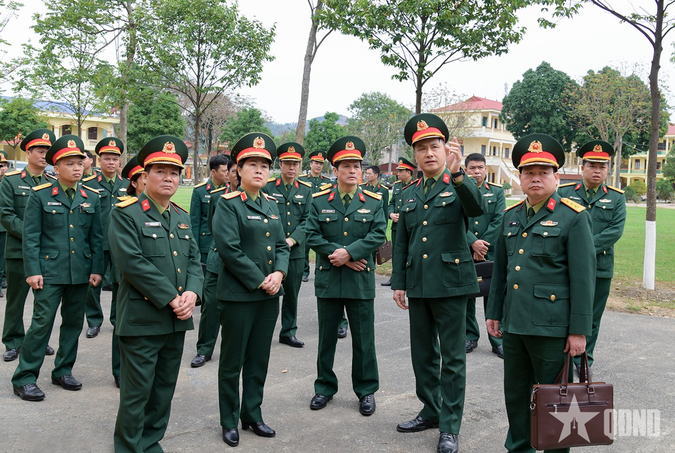 Thiếu tướng Phùng Thị Phú cùng đoàn công tác đi kiểm tra thực tế công tác bảo đảm cơ sở vật chất tại Trường Thiếu sinh quân miền Bắc.