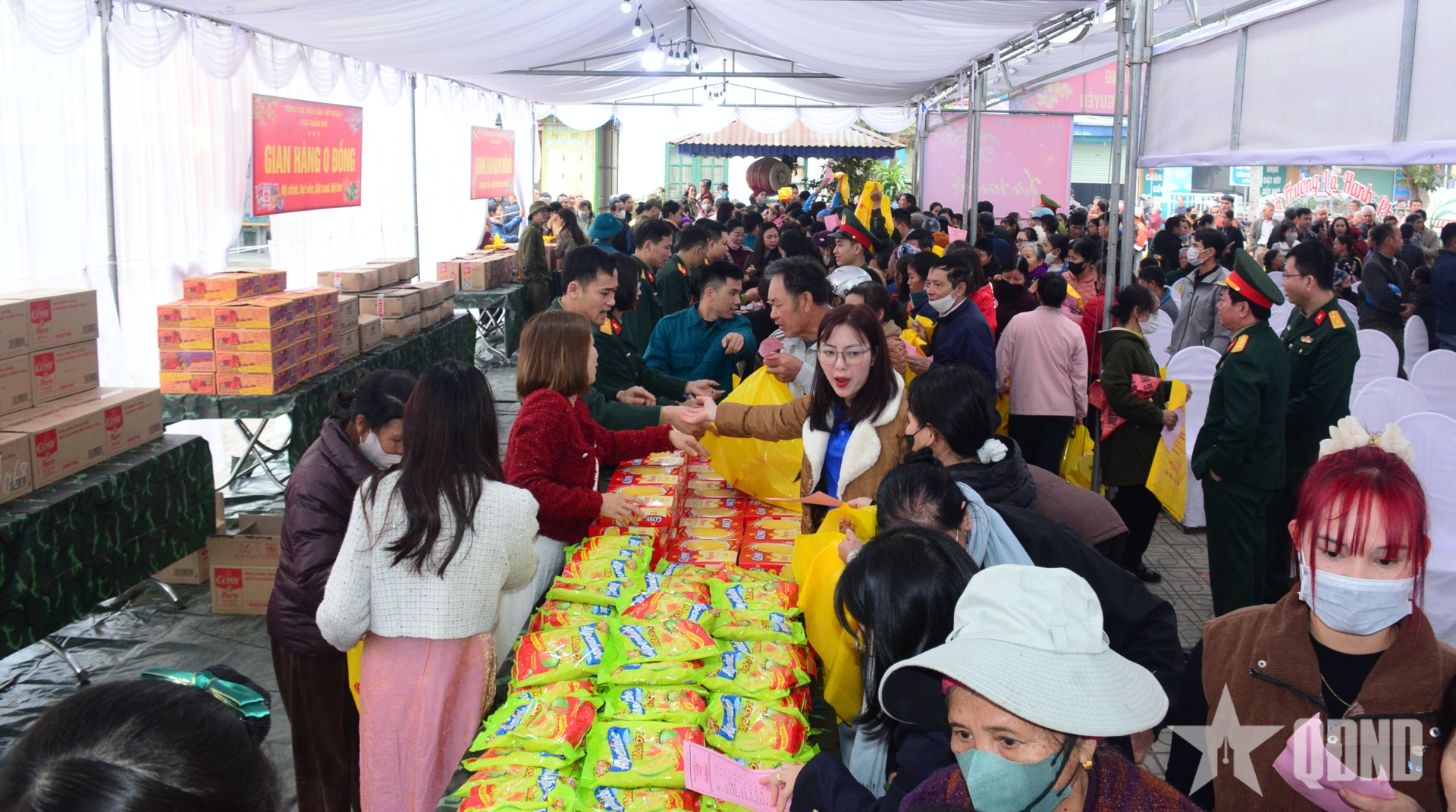 Các gia đình chính sách, có hoàn cảnh khó khăn được phát 1 phiếu mua hàng trị giá 500.000 đồng; các đối tượng khác tham gia phiên chợ được tặng nhu yếu phẩm.