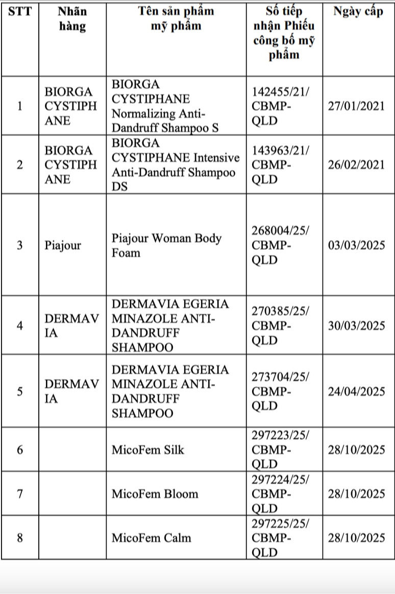 Danh sách 8 sản phẩm mỹ phẩm Cục Quản lý Dược đình chỉ lưu hành, thu hồi tất cả các lô còn hạn sử dụng.