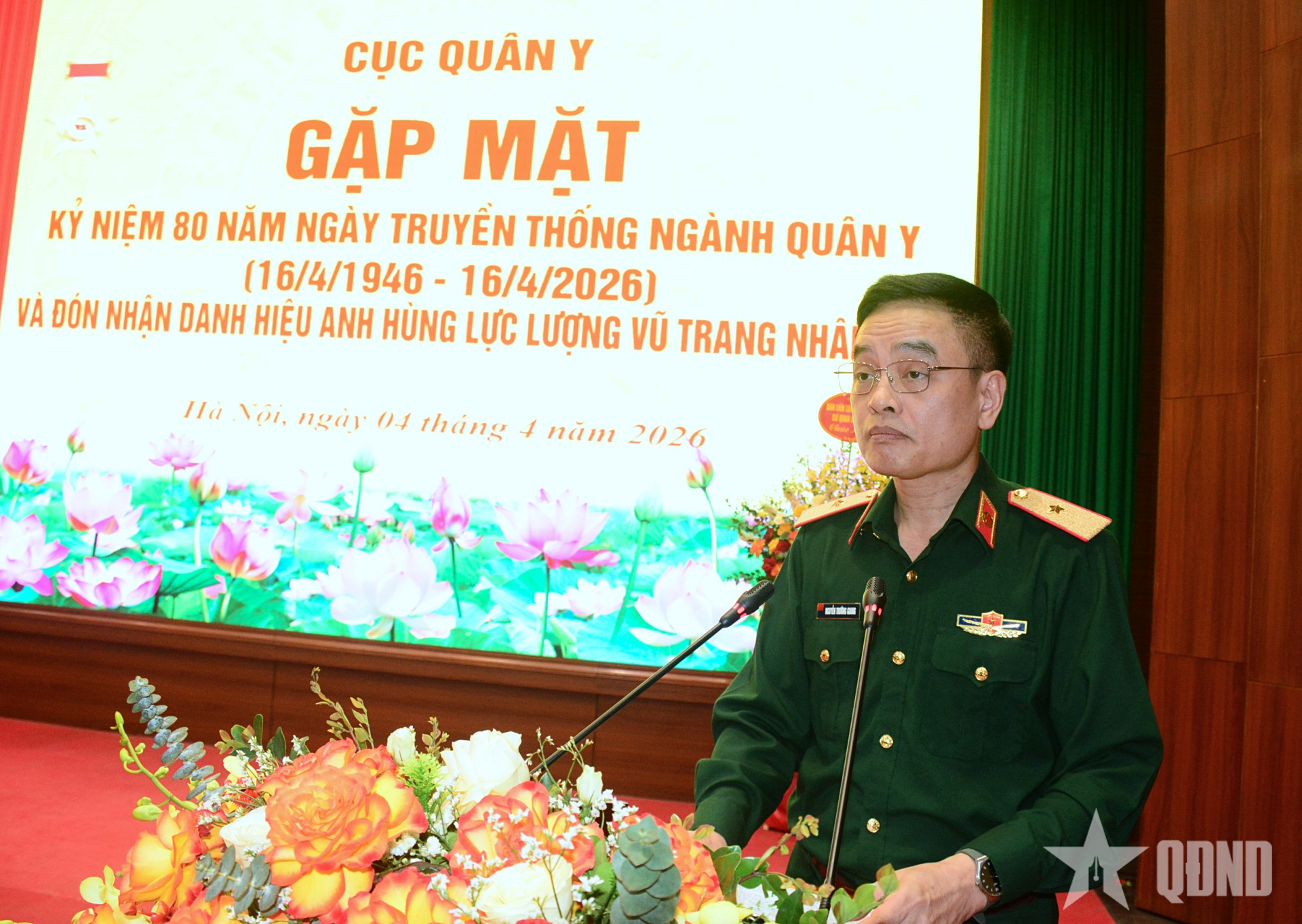 Phát biểu tại buổi gặp mặt, Thiếu tướng Nguyễn Trường Giang, Cục trưởng Cục Quân y ôn lại truyền thống vẻ vang qua 80 năm xây dựng, chiến đấu và trưởng thành, tri ân những đóng góp của các thế hệ cán bộ, nhân viên cơ quan, đơn vị qua các thời kỳ. Từ những ngày đầu vô cùng gian khó, các thế hệ thầy thuốc quân y đã vượt qua thử thách, trở thành lực lượng bảo đảm đặc biệt quan trọng đối với sức mạnh chiến đấu của Quân đội.