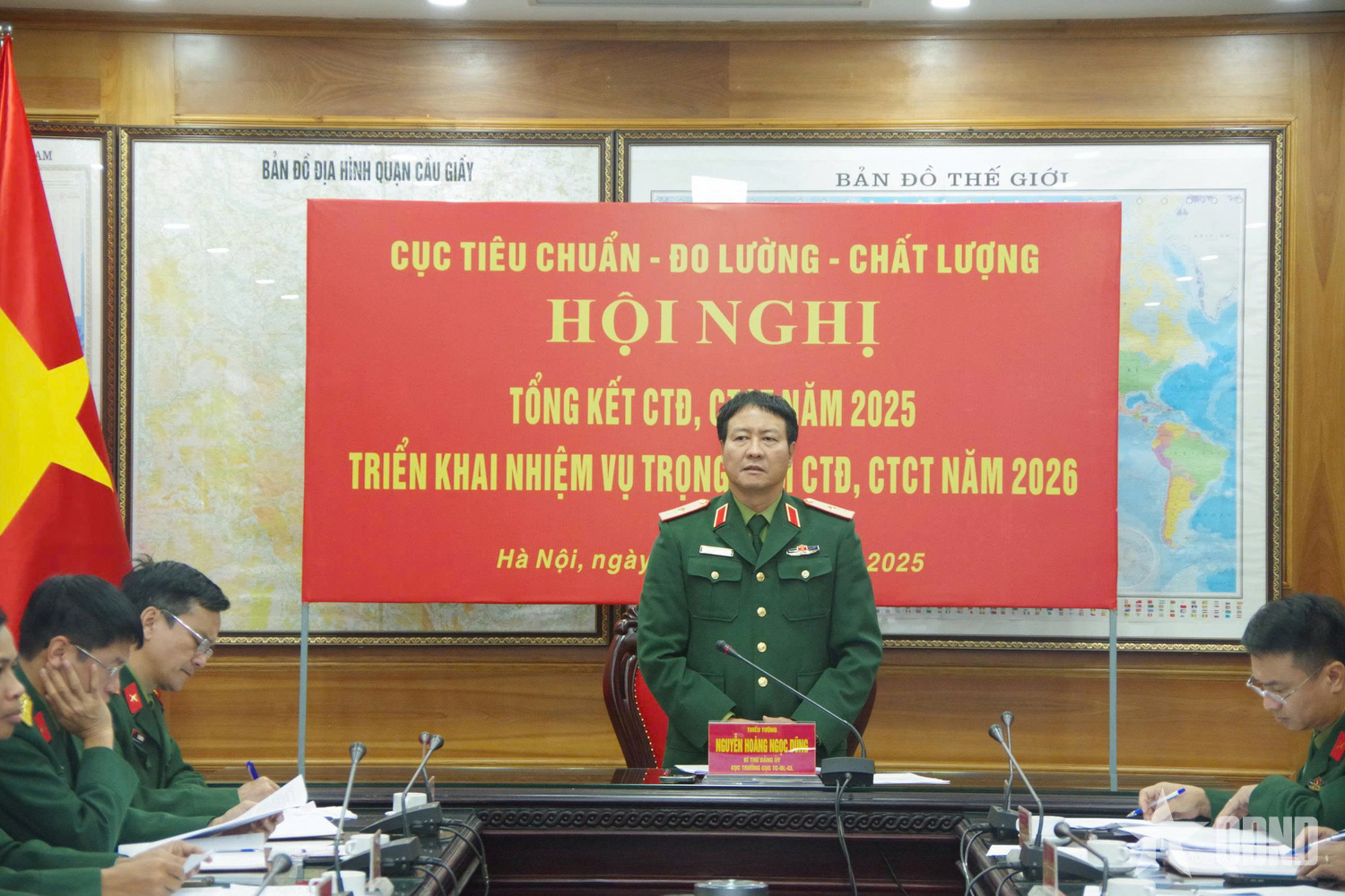 Thiếu tướng Nguyễn Hoàng Ngọc Dũng, Bí thư Đảng ủy, Cục trưởng Cục Tiêu chuẩn - Đo lường - Chất lượng (TC-ĐL-CL) chủ trì hội nghị.