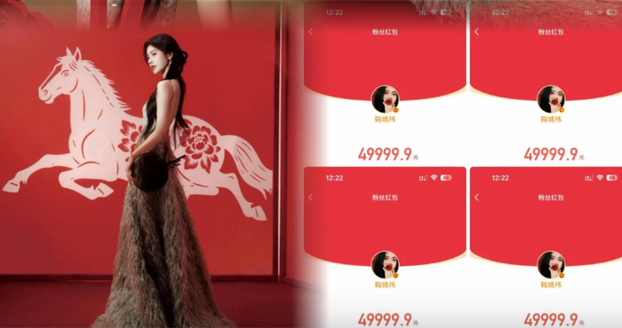 Theo ghi nhận từ Weibo, nữ diễn viên đã phát tổng cộng 4 phong bao lì xì, mỗi phong bao trị giá 49999,9 nhân dân tệ (hơn 188 triệu đồng). Trong đó, 3 phong bao dành cho fan cấp vàng và 1 phong bao dành cho fan cứng, đều là những người hâm mộ đạt đủ điều kiện tương tác và cấp độ theo quy định trên nền tảng này. Các phong bao được thiết lập chế độ chỉ fan đủ cấp mới có thể tham gia nhận lì xì, khiến không khí trên Weibo trở nên vô cùng sôi động chỉ trong thời gian ngắn.