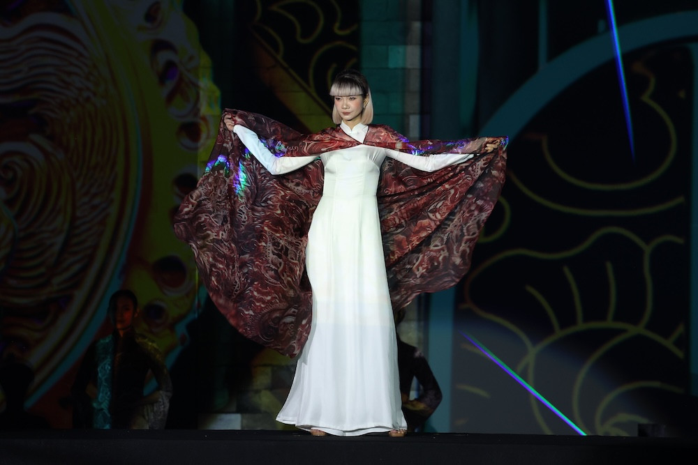 Kế tiếp chương trình là bộ sưu tập Heritage in Hà Nội của nhà thiết kế Anh Thư - thương hiệu áo dài Ngân An là sự kết nối giữa truyền thống và hiện đại. Những họa tiết gốm Bát Tràng, chiếc nón lá, và hình ảnh hồn sen thanh khiết gợi nhắc vẻ đẹp Việt trong âm nhạc Trịnh Công Sơn, tái hiện chiều sâu văn hóa đất kinh kỳ với sự tham gia của 4 phu nhân đến từ đại sứ quán Mỹ - Séc - Nhật Bản - Ukraine, hoa hậu Trần Bảo Ngọc và các người mẫu thể hiện cầu nối văn hóa và di sản giữa Việt Nam và bạn bè 5 châu.
